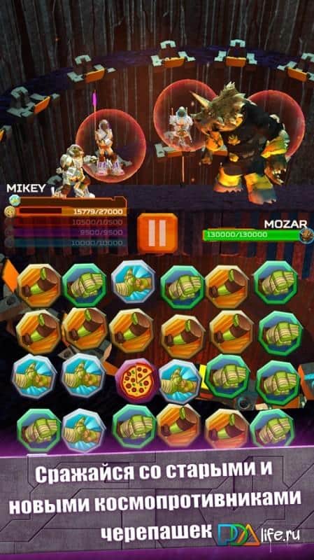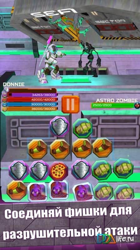 Студия разработчик Nickelodeon хорошо известна своими нестандартными решениями и оригинальными идеями. Но на этот раз разработчики решили пойти, так сказать натоптанной дорожкой, взяв за основу сюжет из популярного некогда мультипликационного сериала и не менее знаменитую игровую механику головоломки Match 3 Quest. Проект получил название TMNT: Battle Match или Черепашки - ниндзя: Космобитва. Как не трудно догадаться из названия разработчики отправили знаменитую четверку в космос. Там же вам предстоит изучать бескрайние просторы и конечно же сражаться. Составляя последовательности фишек наносите удары, выигрывайте битвы, получайте очки. А на заработанные премиальные улучшайте героев, это в скорости очень пригодиться, ведь схватки с боссами черепашки будут проводить совместно и вот тут от вас потребуется тактическое планирование.