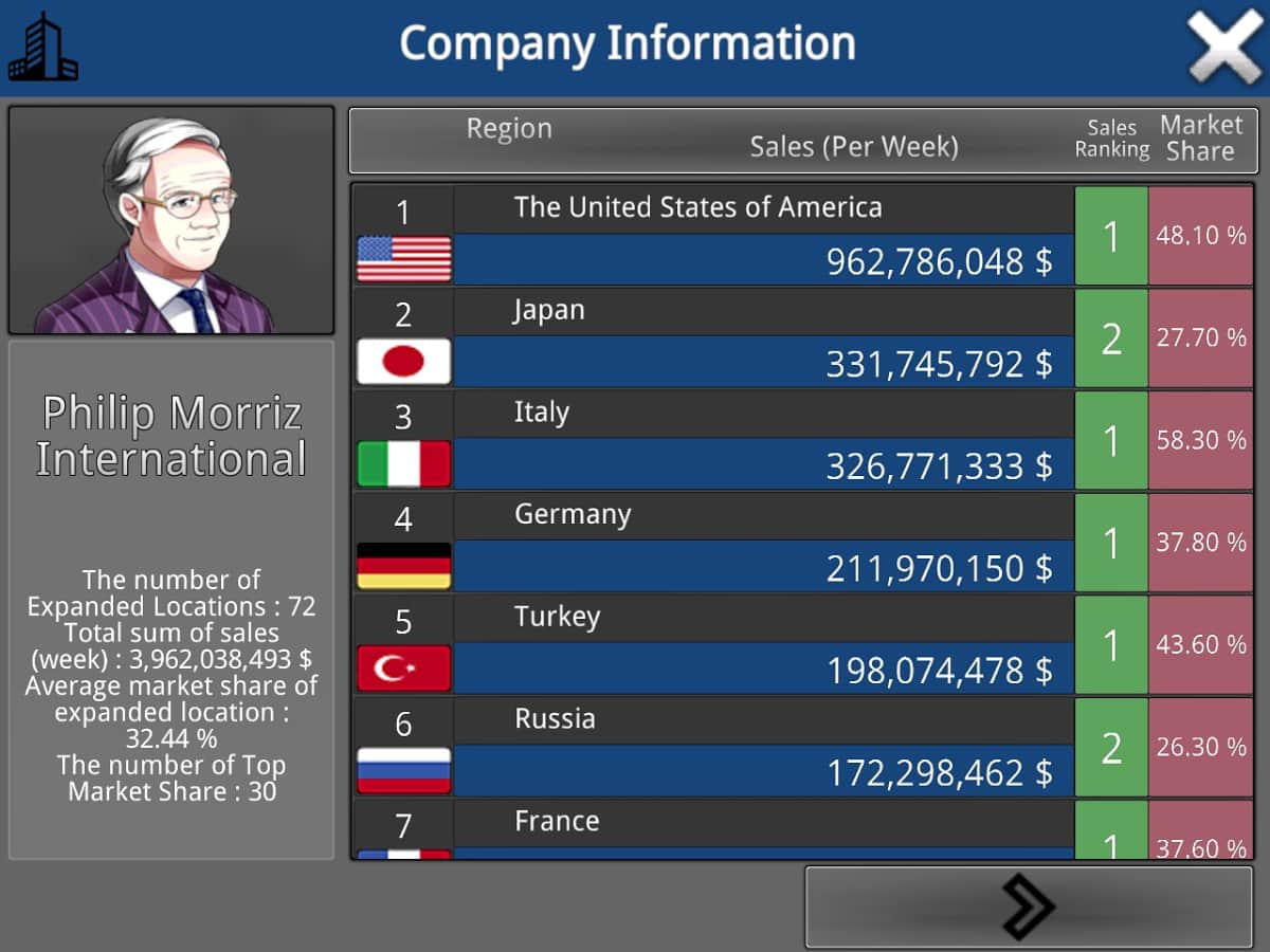 Несмотря на всеобщую борьбу с курением и меры принимаемые правительствами дабы снизить потребление сигарет, все же мировые табачные гиганты по сей день прекрасно существуют и продолжают развитие рынка. Tobacco Inc. (Cigarette Inc.) реалистичный симулятор в котором вам предстоит выступить в роли главы табачной компании и постараться получить монополию по продаже сигарет в мире. Для этого у вас будут достаточно широкие возможности, помимо экономических и маркетинговых ходов есть возможность использования сомнительных мер. Выращивания сортов табака с наивысшим привыканием, смешивания сортов, и прочее. Однако основной акцент в игре сделан все таки на вполне легальные способы продвижения своей продукции. Так что у вас будет возможность попробовать свои силы в управление компанией в мировых масштабах.