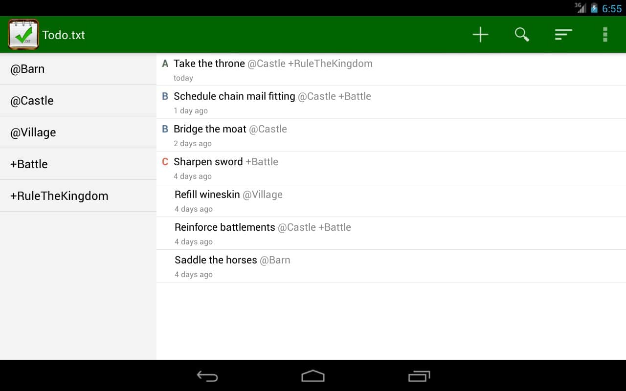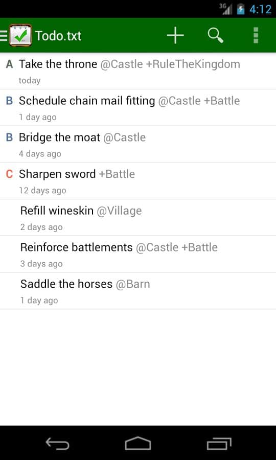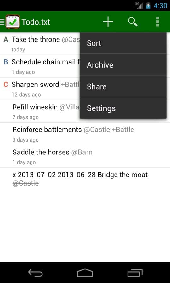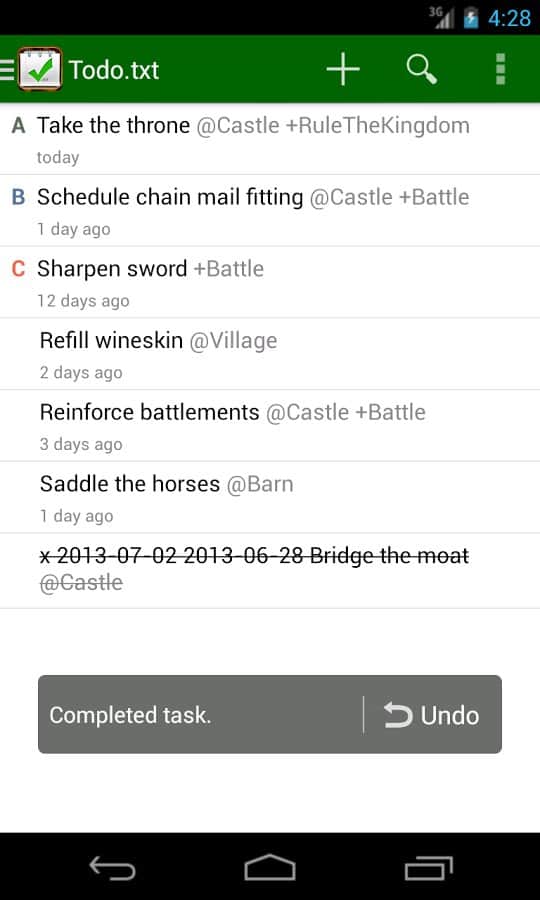 Todo.txt - Удобный текстовый редактор, в котором вы найдете уйму дополнительных функций. Вы можете использовать это приложение как обычный блокнот, или же создать для себя целое расписание на весь день. Так же оно будет оповещать вас о важных делах, и вы сами сможете задать приоритет дел, те которые более важные будут перемещены на первый план. Удобное управление списками, при помощи различных фильтров значительно улучшает работу с приложением в целом.
