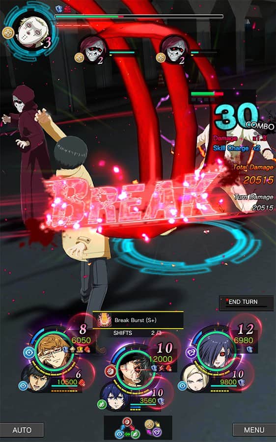 TOKYO GHOUL [:re birth] - ролевая игра в основу которой легла знаменитая анимэ история, которая рассказывает нам о неком молодом человеке который в результате травмы получил в качестве пересаженных органов элементы мистических существ, после чего вокруг него начинают разворачиваться загадочные события. Данная версия это мобильное исполнение которое в свою очередь при упрощенном геймплее получило полноценную сюжетную линию и конечно же классическое визуальное исполнение.