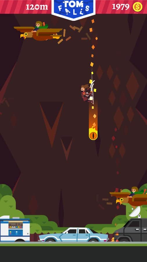 Tom Falls – веселая игра на андроид, где вы будете управлять полетом Тома. Том Кукуруз попадет с самого высокого здания в городе и попадает в другую вселенную, где у него на пути встанет большое количество препятствий и преград. С помощью одного прикосновения пальца к экрану телефона или планшета управляйте полетом Тома и помогайте ему по пути собирать многочисленные монетки. Перемещайте персонажа из стороны в сторону и избегайте столкновения с преградами на пути. Собирайте монетки и приобретайте на них новые наряды и украшения для своего героя. Играйте со своими друзьями и добивайтесь рекордных результатов, поднимаясь все выше в таблице лидеров и достижений.