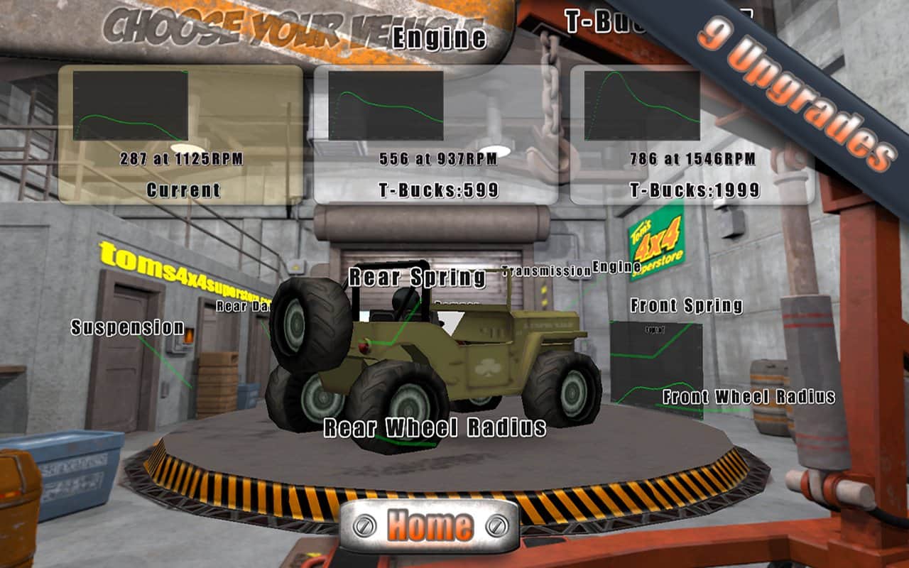 Tom's 4x4 - попробуйте покорить бездорожье и прочие препятствия на внедорожниках! У вас - полный привод, что существенно дает преимущество перед пересеченной местностью, также вы можете улучшать и модернизировать ваш вездеход, чтобы покорить любую дорогу! Не забудьте взять в запас запасные детали! Всего 20 трасс с опасными поворотами, ухабами, ямами в разные времена года - летом и зимой!