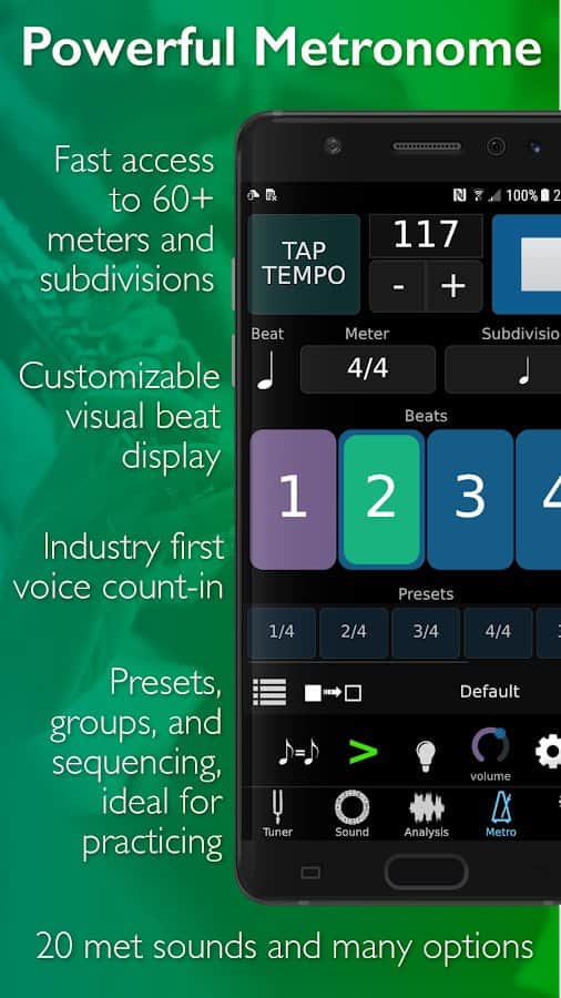 TonalEnergy Tuner and Metronome подходит не только для профессионалов, но и для новичков в сфере музыки. Оно дает возможность практиковаться на создании уникальных мелодий и звуков.