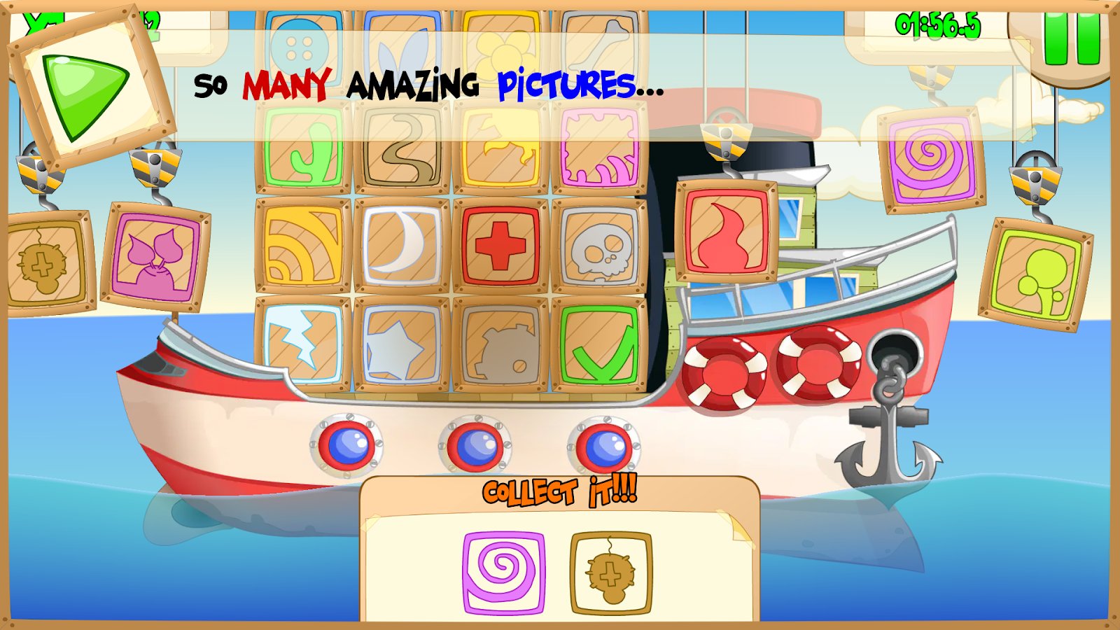 Toon Box - Отправляйтесь в увлекательное морское приключение и проверьте свою внимательность среди сотен грузовых ящиков. Исследуйте палубу судна, находите скрытые комбинации символов, сопоставляйте пары и быстро выбирайте нужные предметы. Время играет против вас — ловите летающие часы, чтобы продлить поиск и открыть больше сокровищ. Два режима позволяют играть так, как вам нравится: динамичный классический для любителей испытаний и спокойный детский для расслабленного исследования. Тренируйте память, концентрацию и наслаждайтесь атмосферой путешествия.