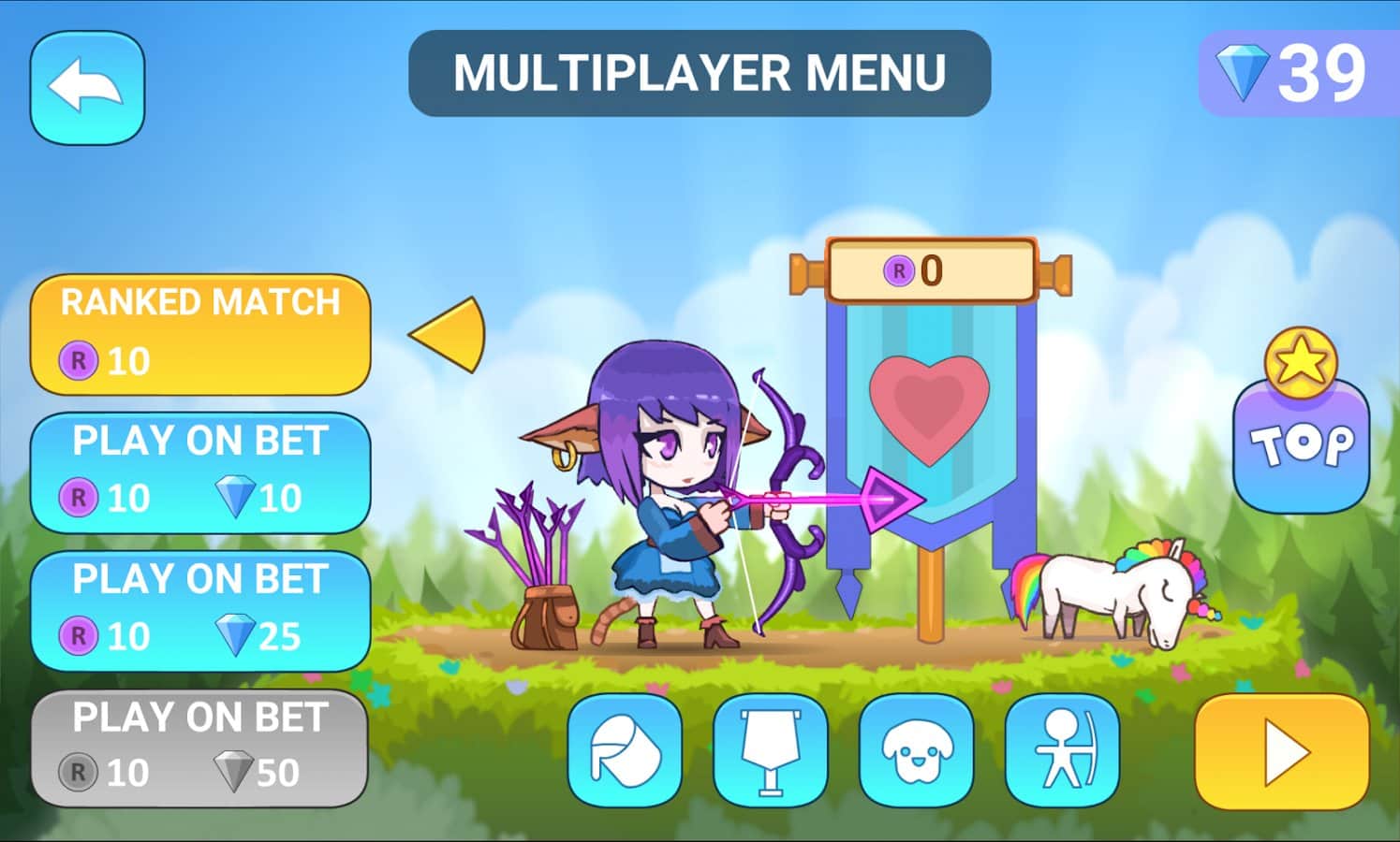 Top Archer – стрельба из лука по мишеням на андроид, с несколькими режимами игры. Возьмите под свой контроль лучника, которому необходимо стрелять из лука по мишеням и набирать очки. Чем больше у вас будет очков тем больше бонусов для вас откроется таких как: возможность кастомизации вашего персонажа, получение питомца, возможность построить трибуну и посадить туда множество болельщиков, а также изменить город до неузнаваемости. Стреляйте по мишеням с помощью одного прикосновения пальца к экрану и поднимайте свой рейтинг. Играйте в многопользовательском режиме и бросайте вызов сильнейшим игрокам, побеждая их в поединках и забирая себе их награды и золото.