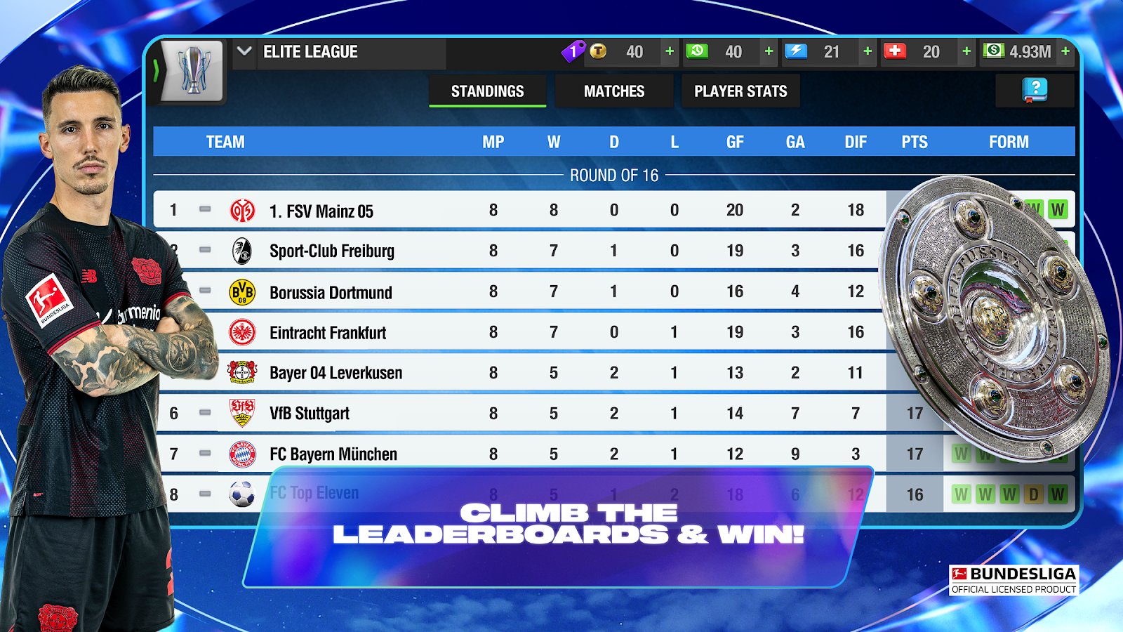 Top Eleven - игра в которой вам предстоит привести свою футбольную команду к победе, теперь и на аndroid. Ваша задача создать свою команду, тренировать ее, выбирать подходящую тактику и улучшать стадион на котором играете. Также вы будете участвовать в соревнованиях за первое место с другими командами.