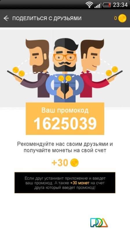 Заработать пригласив друга в приложение.