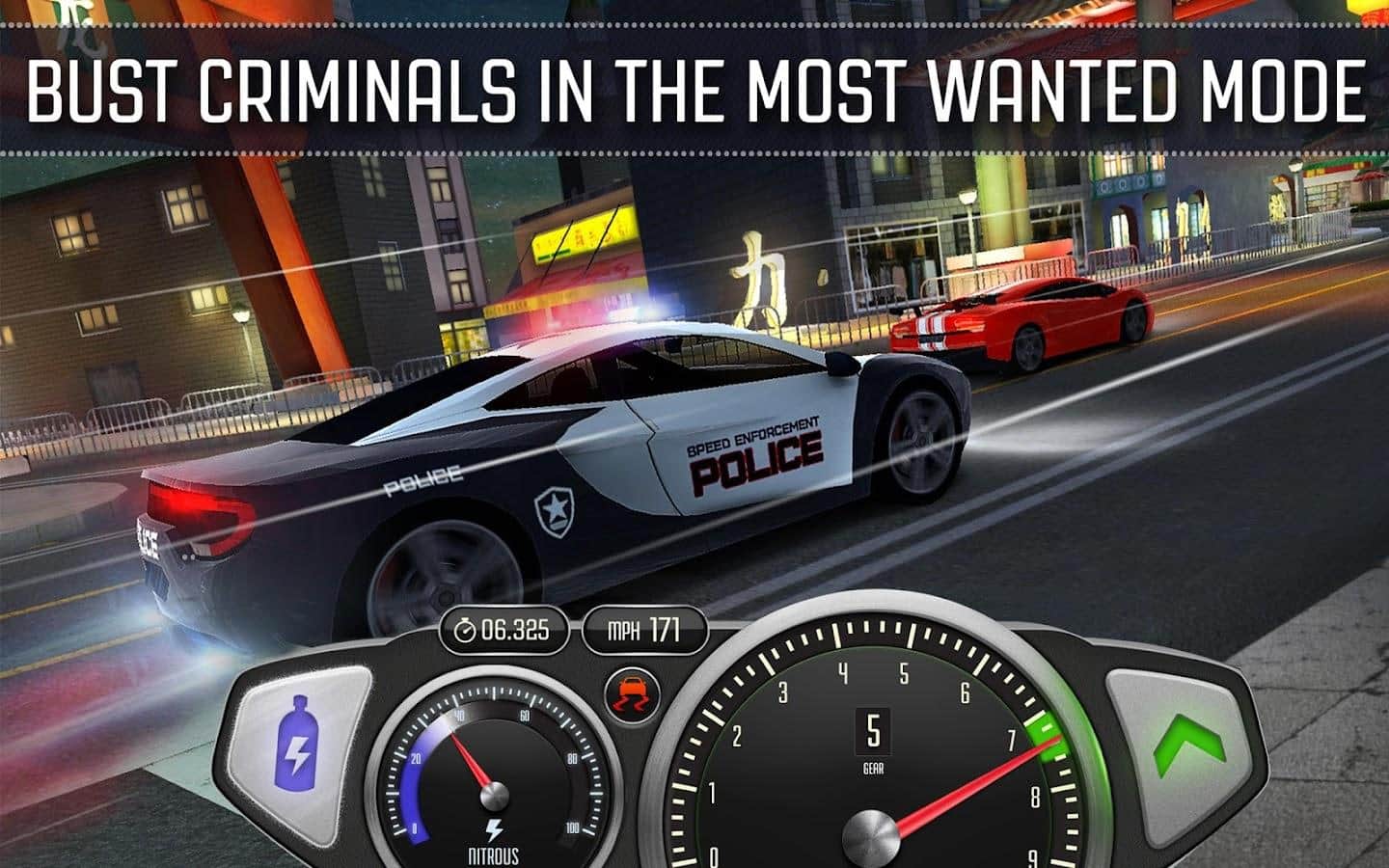 Top Speed: Drag & Fast Racing - увлекательные драг-гонки на огромных скоростях. В игре большой выбор автомобилей - их в общей сложности около 70. Также в игре присутствуют боссы, порядка двух десятков. Все драг гонки очень чувствительны к управлению своей машины, всегда необходимо вовремя переключать передачи и включать прямой впрыск нитрометана в двигатель.