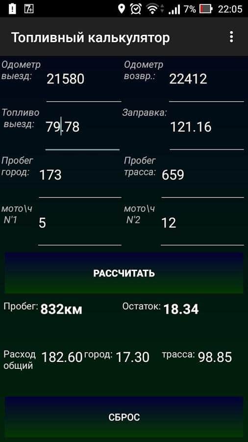 Скачать программуТопливный калькулятор