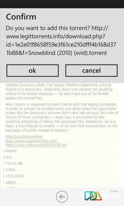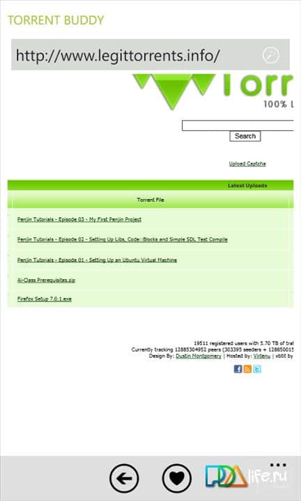 Torrent Buddy - это просто замечательное клиентское приложение для Utorrent, предназначенное для использования в Windows Phone -смартфонах Nokia и других. Благодаря этой программе очень удобно контролировать свои торренты, добавленные на ПК. На главный экран Вашегосмартфона можно вынести живую плитку приложения, на которой отображается информация о состоянии закачки торрентов. Информация на плитке будет обновляеться в фоновом режиме. Для работы Torrent Buddy требуется запуск Utorrent на ПК. Бесплатная версия приложения поддерживает возможности полной, за исключением добавления новых торрентов.