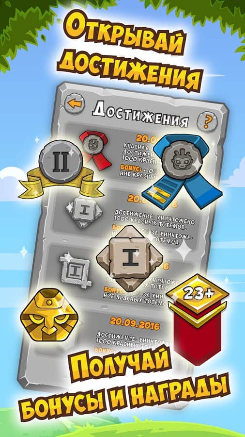 ТОТЕМОСЫ — игра от начинающей Питерской компании для настоящих интеллектуалов. Вам предстоит развить стратегическое мышление, чтобы добиться хороших результатов в этой игре. В игре нет уровней, надуманного сюжета и ограниченного раунда. Есть только игровое поле 6 х 9 клеток и ваша смекалка. Длина раунда зависит исключительно от логики владельца смартфона и его навыков мышления. В игре есть онлайн лидерборд, чтобы следить за своими успехами и успехами друзей, а так же система достижений, которая поможет вам пробиться во главу списка лидеров.