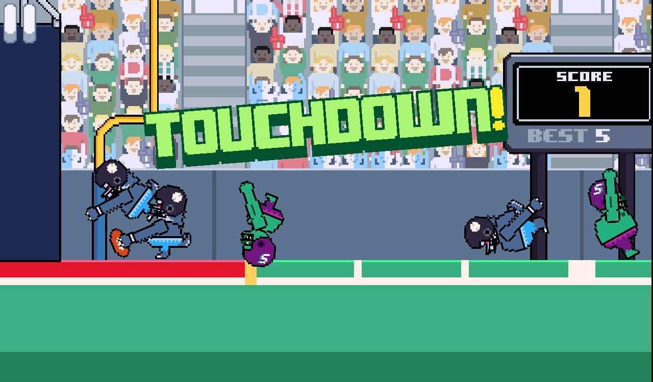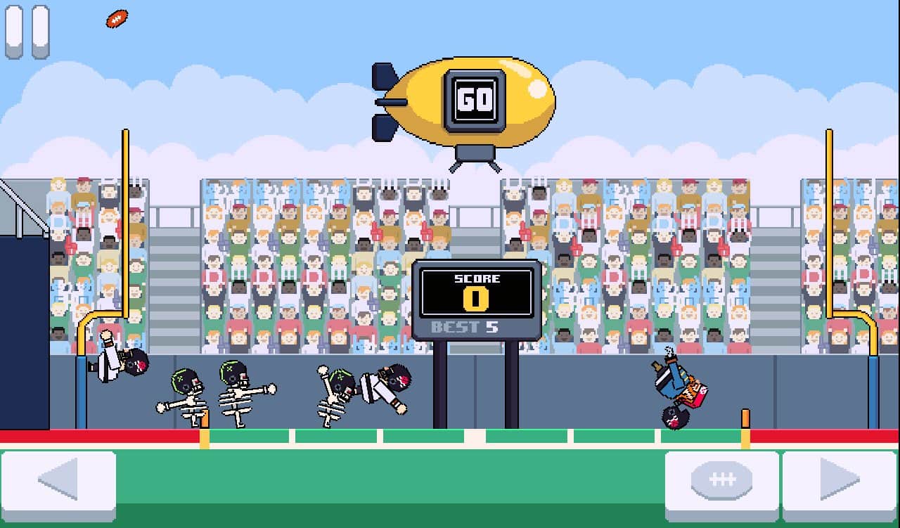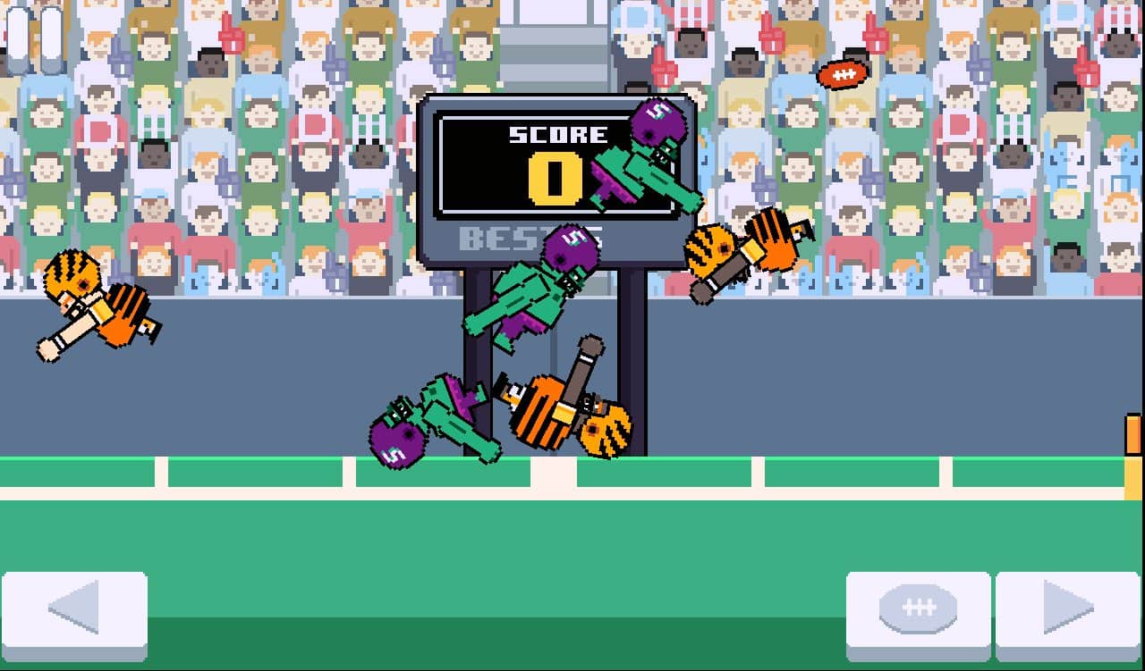 Touchdowners – спортивная игра на андроид, где вы будете играть в американский футбол. В этой игре вы возьмете под свой контроль команду из трех футболистов и приведете ее к победе. Вашей главной задачей будет вовремя нажимать на экран своего телефона или планшета, чтобы ваши футболисты завладели мячом и пронесли его через все поле к зоне противника, обходя мощных защитников. Старайтесь так чтобы ваши герои проделывали невероятные трюки и прыжки, преодолевая все преграды на пути. Побеждайте в различных чемпионатах, устанавливайте свои рекорды в этой игре и поднимайтесь все выше в турнирной таблице. В эту игру вы сможете играть со своими друзьями на одном устройстве.