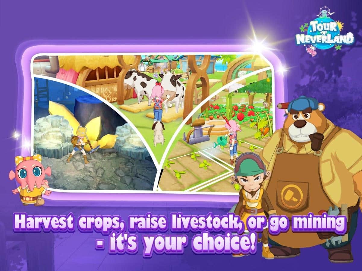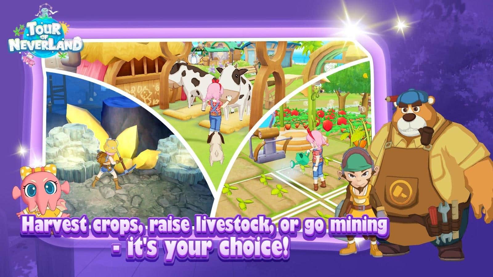 Tour of Neverland - Управляйте своей собственной фермой на тропическом острове, открывайте новые участки земли, сажайте посевы, возводите всевозможные сельскохозяйственные объекты и украшайте свой домик так, как вам хочется! Ловите рыбу прямо из океана или занимайтесь подводным плаванием, чтобы поймать морских существ. Постройте общежитие, чтобы привлечь посетителей и завести новых друзей-животных. Вы даже можете прыгнуть в минную тележку и исследовать глубины шахт в поисках бесценных сокровищ!