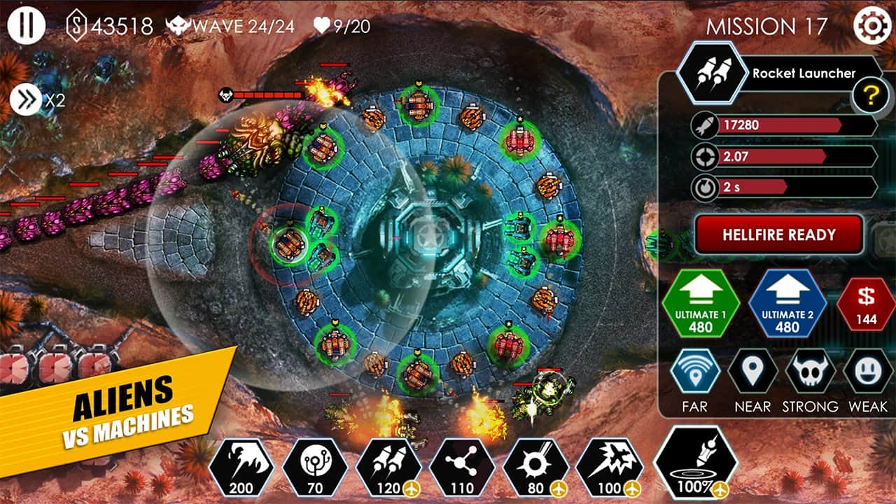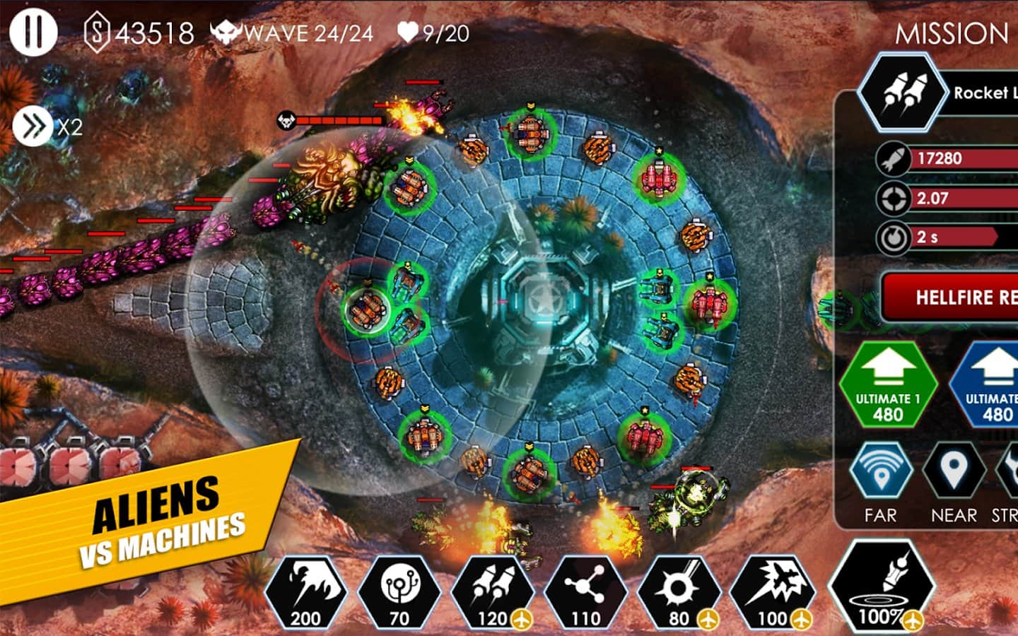 Tower Defense: Invasion - Великолепная игра в стиле защита башни. Здесь вам предстоит противостоять инопланетным вторженцам, которые решили забрать землю себе. В вашем распоряжении несколько различных видов турелей, которые будут направлены на разные виды миссий. Одни будут бить по области но наносить меньше урона, другие же будут уничтожать огромных врагов, но всего по одной цели. Вам нужно найти идеальный баланс и остановить вторжение, и уничтожить главарей пришельцев.