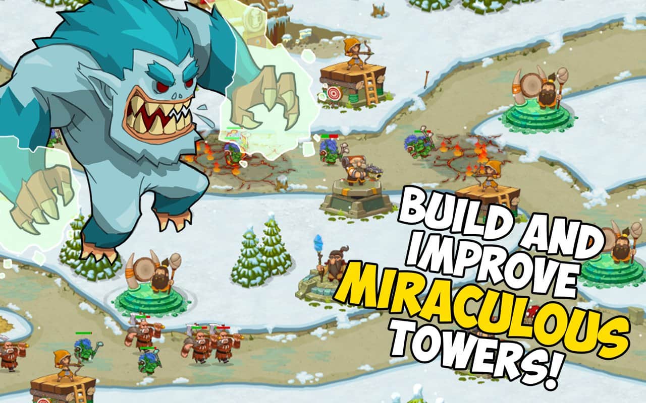 Tower Defense: Magic Quest – стратегия на андроид, в которой вам предстоит защитить свои земли от врагов. На вашу страну нападают темные силы с армией демонов, орков, гоблинов, гигантских пауков и других ужасных монстров, вашей задачей будет разработать свою стратегию и не дать врагам пробраться на ваши территории. Расставляйте свои башни в тех местах где, по вашему мнению, они принесут больше пользы и применяйте магию для защиты. Применяйте силу лучников, магов и воинов и переломите ход событий в сложных ситуациях. По ходу игры улучшайте свои башни и воинов, давая врагам фору. Всего в вашем распоряжении будет 4 вида башен, которые вы сможете улучшать и модернизировать.