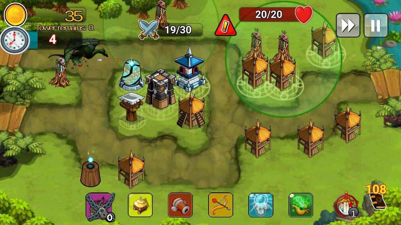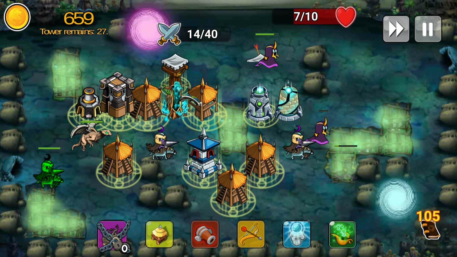 Tower Defense Of The King: Free TD - тактическая стратегия из серии оборона башен в которой вам предстоит защищать свое королевство от орд монстров, драконов и прочей нечисти. В вашем распоряжении будет 12 видов обычных башен и 9 специальных, все с элементами развития, а противостоять вам будет 50 различных видов врагов. По мере прохождения вы сможете заработать более 60 уникальных титулов и пройти игру в различных режимах и на нескольких уровнях сложности. Так же стоит отметить и отличную мультяшную графику, которая превосходно передает фэнтезийную атмосферу игры.