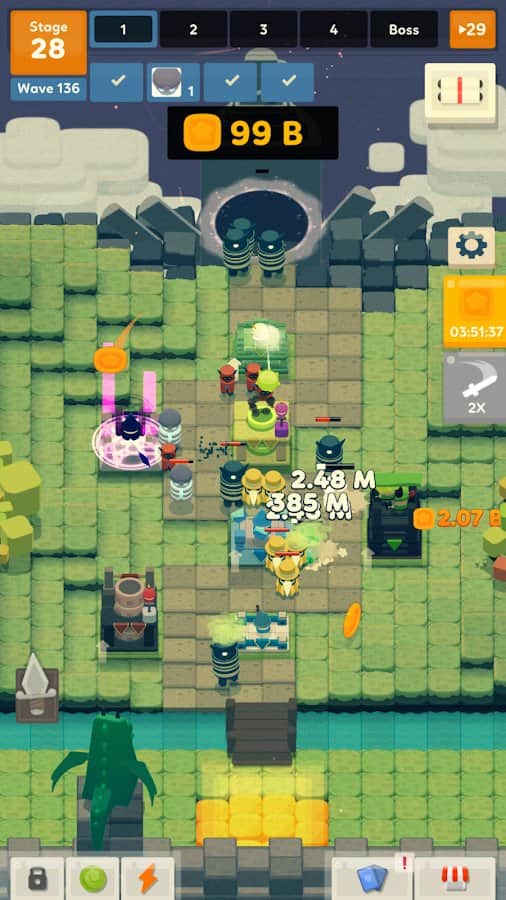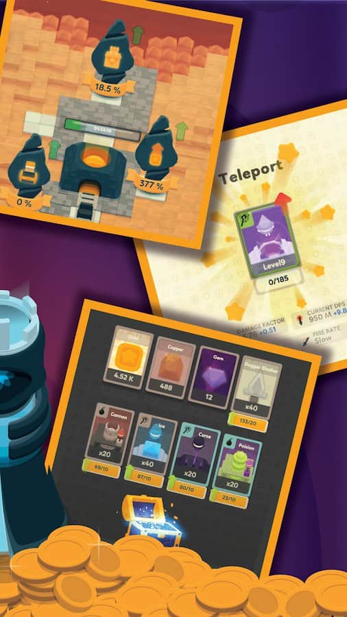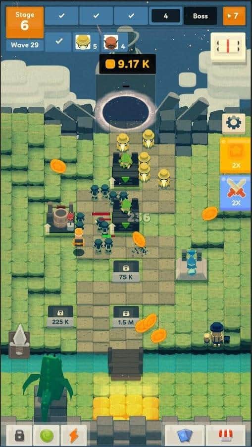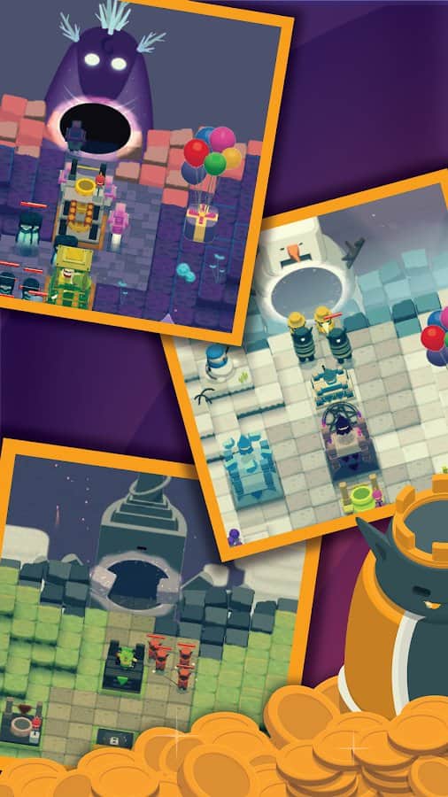 Tower Heroes – захватывающий экшен на андроид, который поведает вам историю одного волшебного фонтана и дракона Гобо. В этой игре бы будете выступать в роли защитника золотого фонтана, который бандиты хотят опустошить и забрать себе все золото. Расставляйте на пути следования бандитов башни и защищайте фонтан любой ценой. Волна за волной бандиты будут атаковать вас приготовьтесь к тому что вам придется действовать очень быстро и прокачивать свои башни. Модернизируйте башни увеличивая их силу и готовя ко встрече с сильными боссами. Собирайте золото за уничтоженных бандитов и призывайте на помощь Гобо в сложных ситуациях.