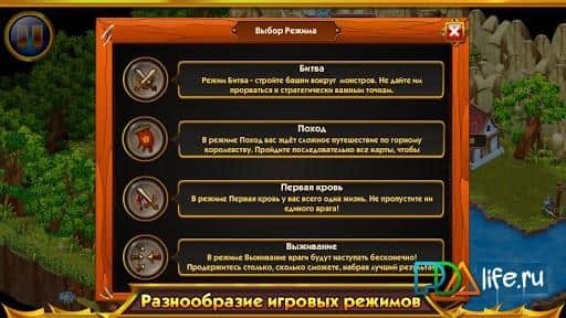 4 режима - битва, выживание, битва до первой крови и поход на горного короля