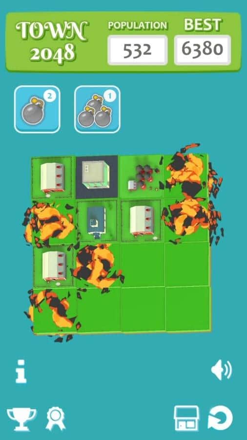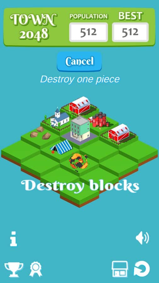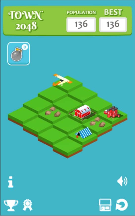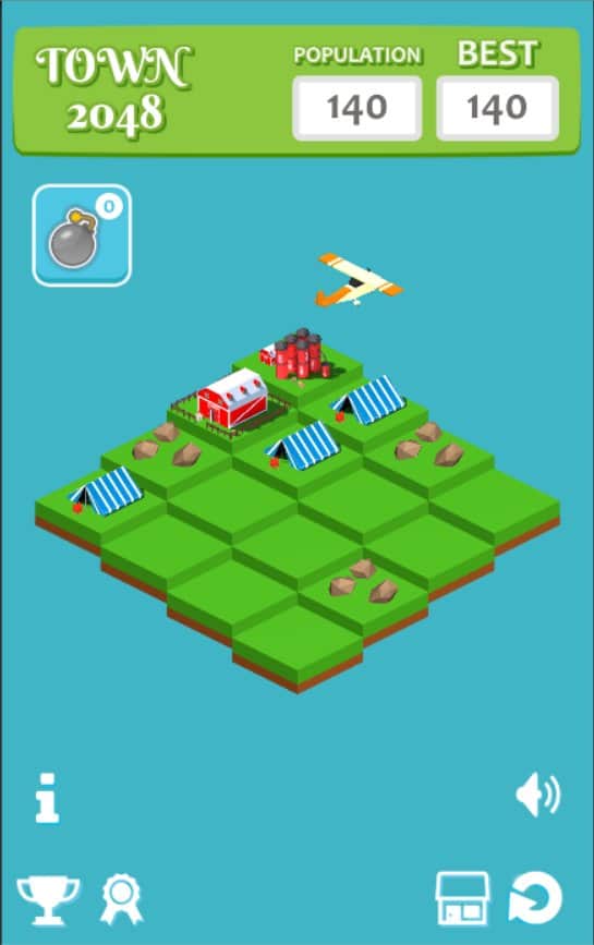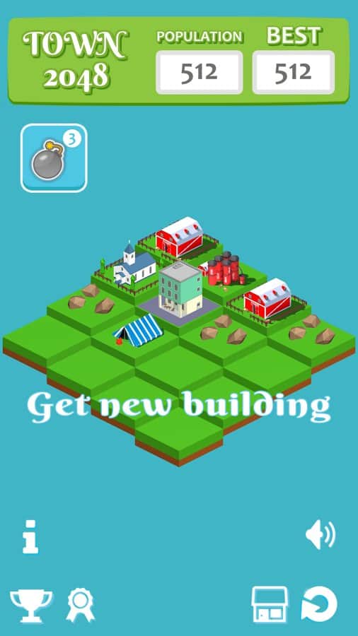 Town 2048 – захватывающая игра головоломка на андроид, созданная по подобию знаменитой игры. В этой игре вы окажитесь в изометрической плоскости, где вашей задачей будет соединять одинаковые объекты и получать совершенно новые здания. Соединяйте между собой по два одинаковых кубика и открывайте новые объекты. Чем больше кубиков между собой вы соедините, тем больше домов и различных объектов получите. Постройте свой город посреди пустоши и соревнуйтесь со своими друзьями за лучшие результаты. Если на вашем пути возникнут лишние блоки, мешающие вам двигаться дальше, уничижайте их. Открывайте для себя новые достижения и устанавливайте новые цели. Весело проводите свое свободное время, соединяя блоки.