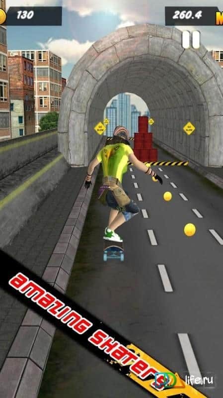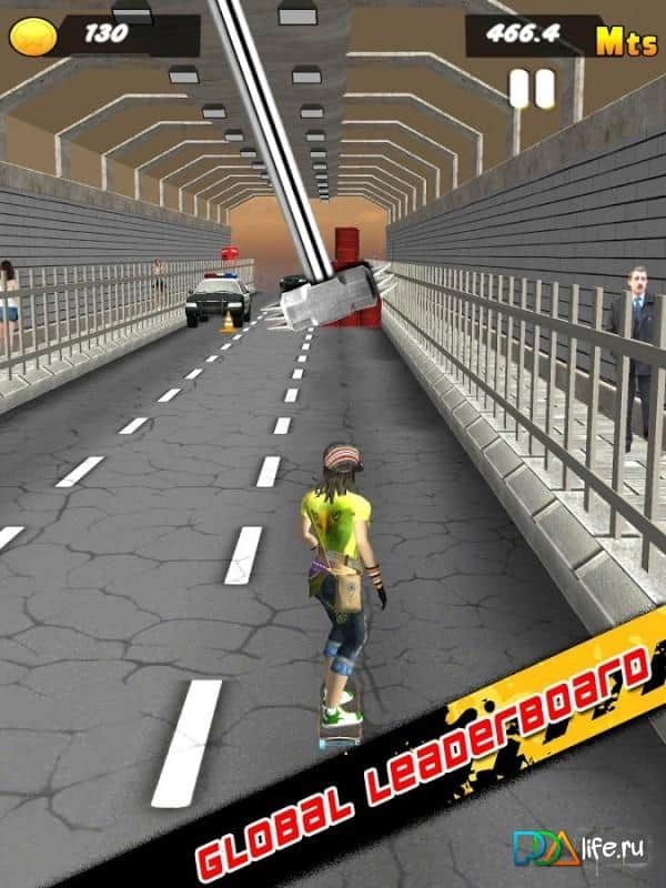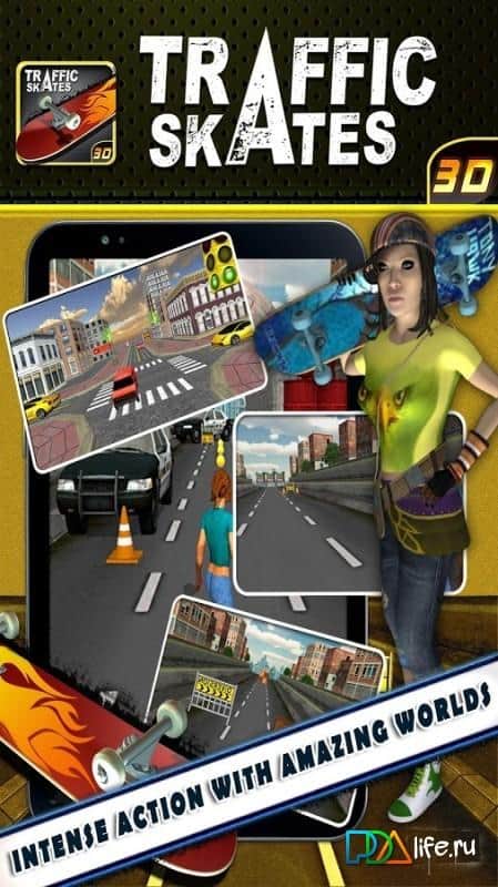 Traffic Skate 3D - классический представитель жанра ранеров, выполненный в лучших традициях серии. Общая концепция игры создана в футуристическом стиле, в остальном Traffic Skate 3D для Андроид не многим отличается от своих многочисленных аналогов. Выбрав персонажа и средство передвижения, а это всевозможные скейты и доски, отправляйтесь в бесконечный заезд по четырем уникальным мирам, по пути стараясь избежать столкновения с препятствиями и собирая монетки, бонусы и улучшения. Заработанные премиальные вы сможете потратить на приобретение инвентаря или улучшение уже имеющегося. Стоит отметить отличный забойный саундтрек, хорошую трехмерную графику, а так же возможность выполнения всевозможных акробатических трюков.