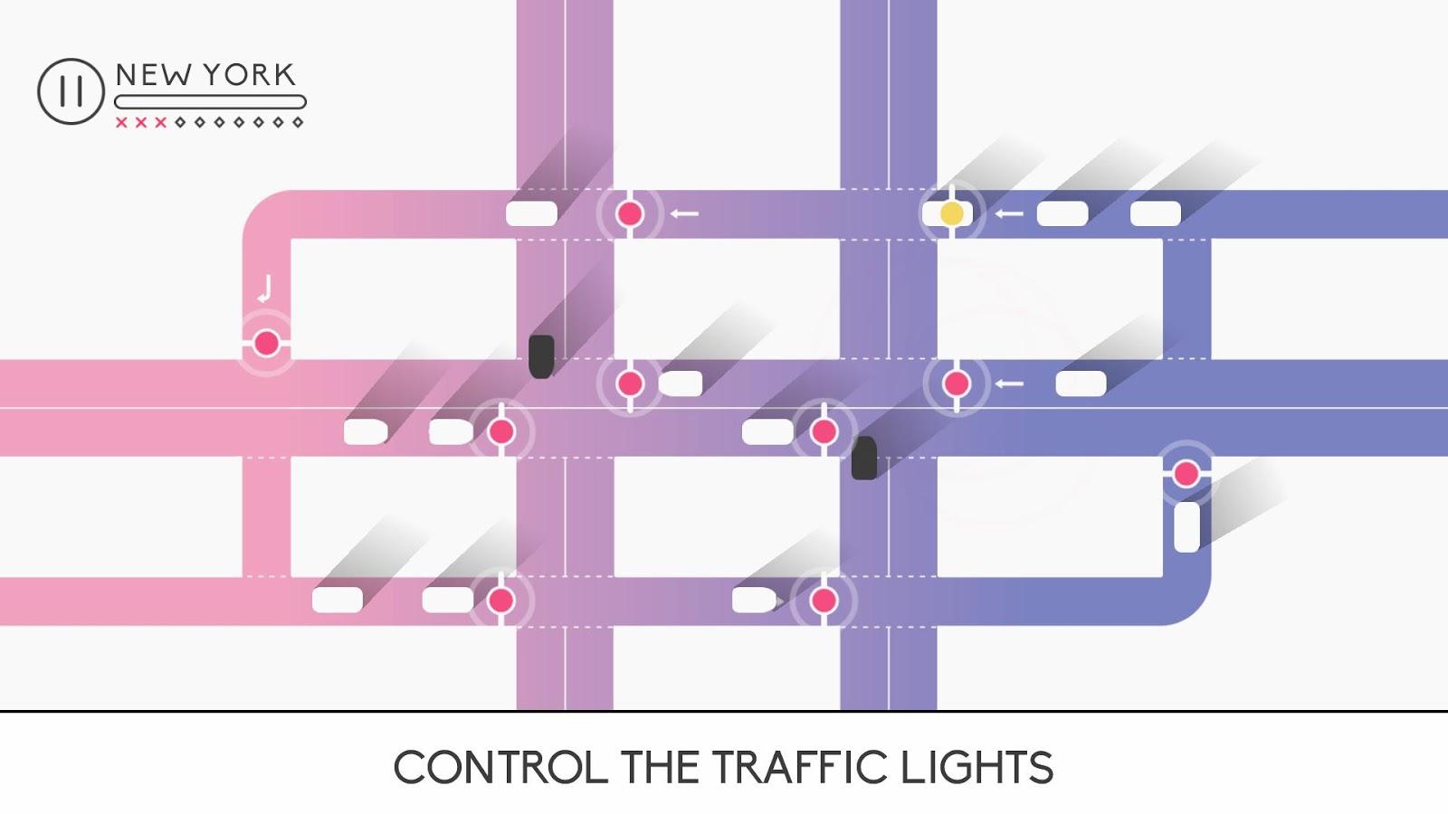 Traffix – минималистичная головоломка на андроид, где в будете регулировать движение на дорогах. На дорогах больших городов твориться настоящий хаос и вашей задачей будет регулировать движение транспорта. В нужный момент касайтесь экрана своего телефона или планшета чтобы регулировать сигнал светофора переключая свет. В этой игре вы будете регулировать движение машин, грузовиков, поездов и даже самолетов. С каждым новым уровнем сложность игры будет становиться все выше и вам придаться изрядно потрудиться чтобы не допустить аварийных ситуаций на дороге.