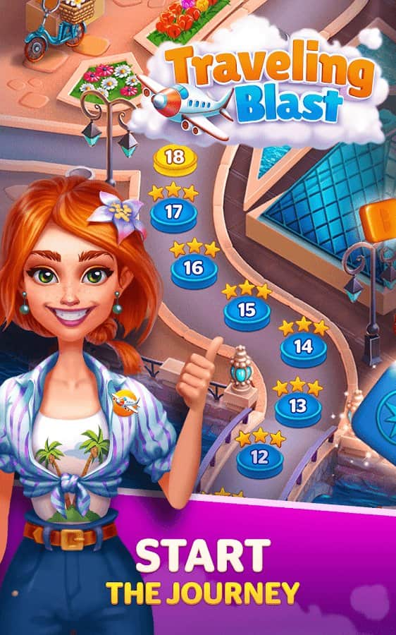 Traveling Blast - эта игра про путешествия и решения головоломок по типу 3 в ряд. Однако это не обычное 3 в ряд где все что вам нужно это двигать блоки. Здесь все будет зависеть от уровня и поставленной задачи, так же могут быть добавлены дополнительные элементы что будут мешать вам проходить игру или же передвигать блоки вместо вас в неудобные положения, а так же многое другое.