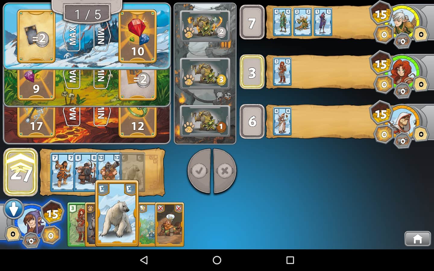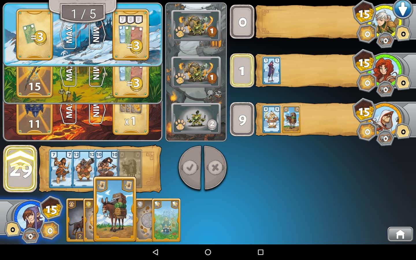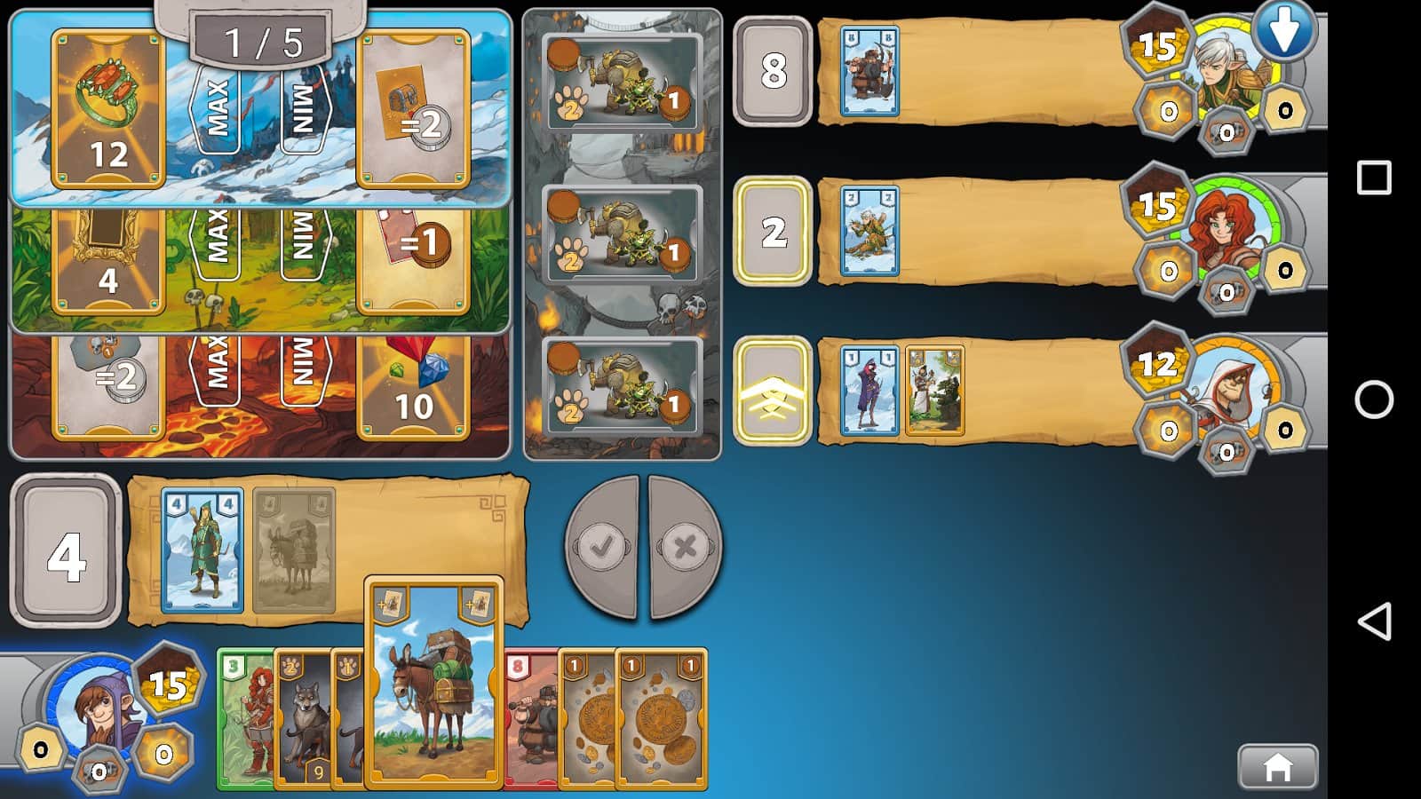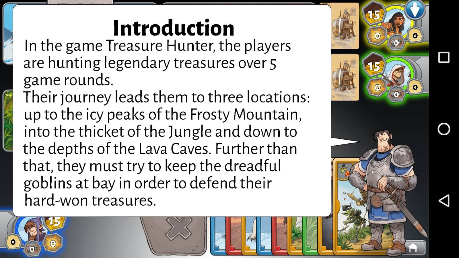 TreasureHunter by R.Garfield – карточная игра на андроид, с увлекательным и динамичным геймплеем. В этой игре вашей задачей будет выступать против семи компьютерных соперников, и пытаться любыми путями обхитрить их. Каждый игрок в начале игры будет набирать себе карты случайным образом и, отталкиваясь от их значения выкладывать на игровое поле. Выбивайте своими картами максимальные или минимальные числа и обыгрывайте опытных соперников. Для новичков в начале игры предусмотрено обучение, которое позволит им освоиться в игре и понять правила. Как только вы наберетесь опыта, то бросайте вызов реальным игрокам со всего мира или играйте со своими друзьями на одном устройстве.