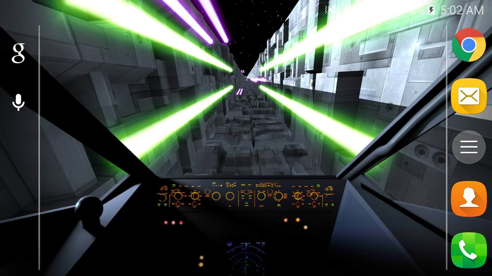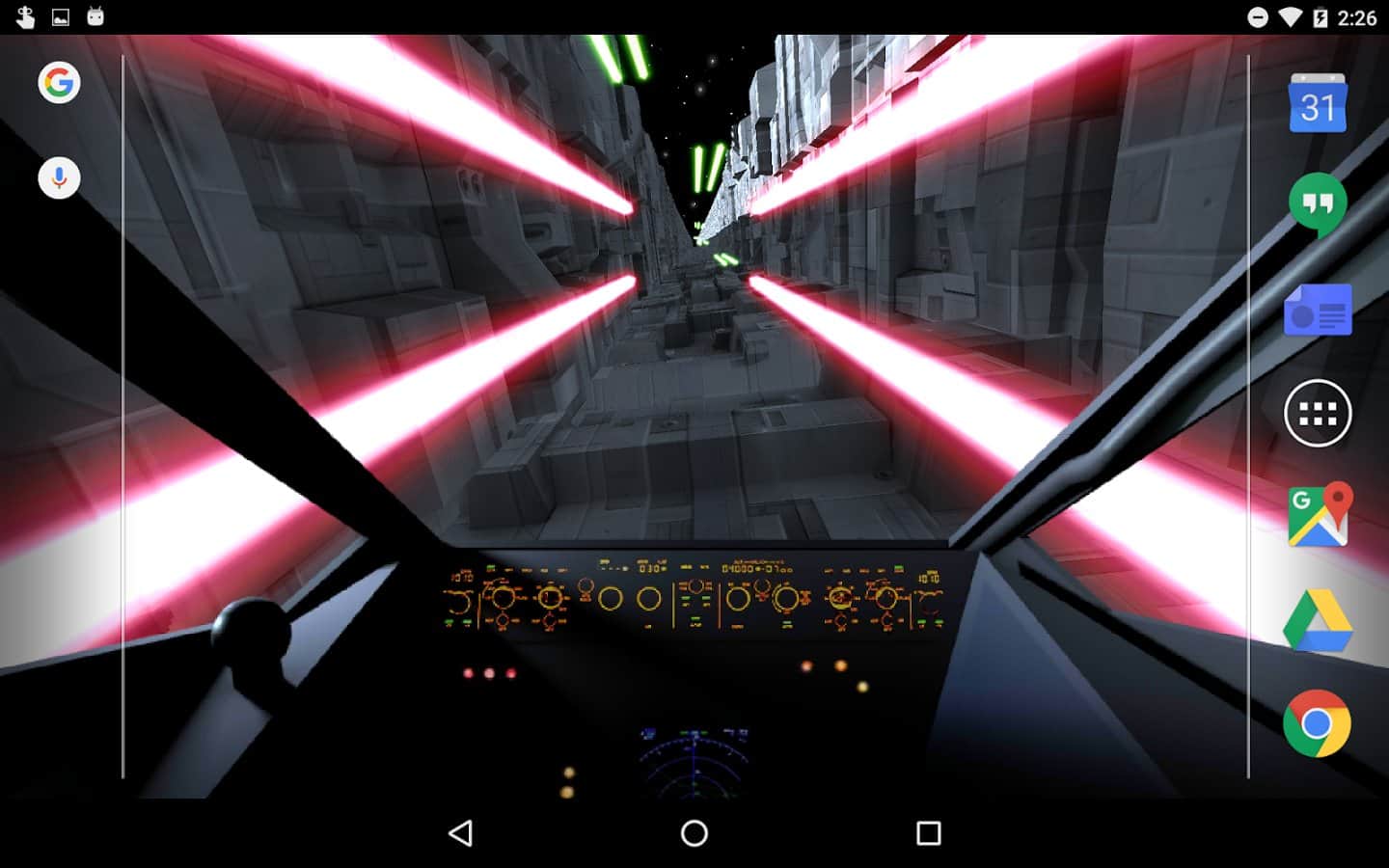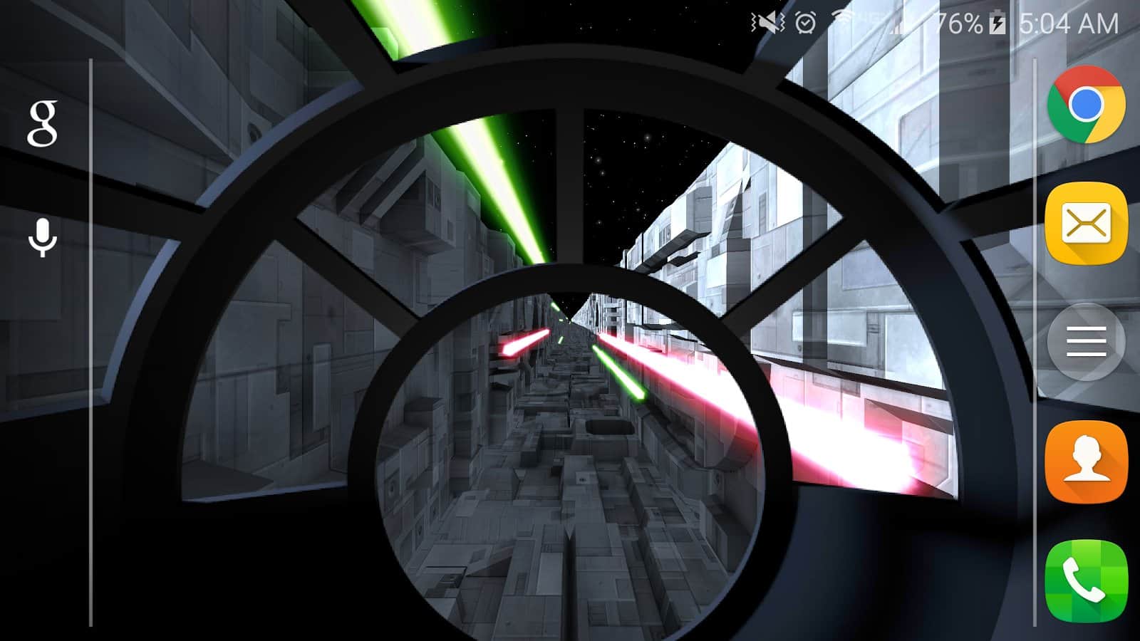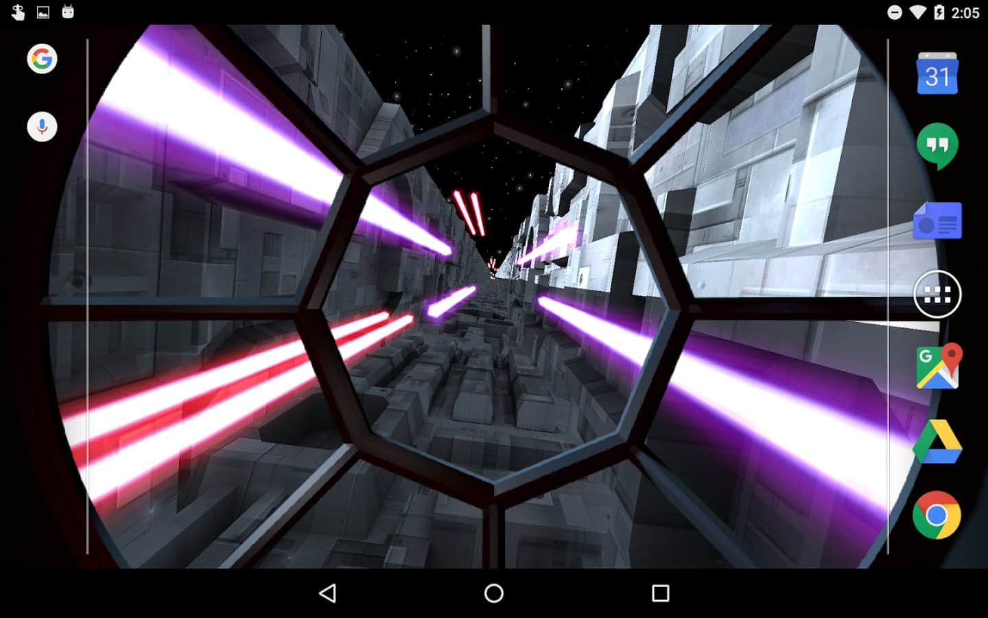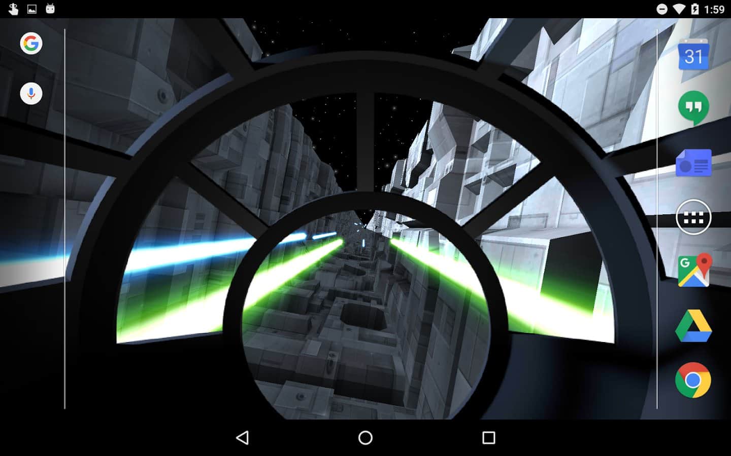 Trench Run Live Wallpaper – если вы любите «Звездные войны» то эти живые обои просто созданы для вас. Возьмите под свой контроль кабину пилота и перемещайтесь по узким ущельям свой корабль, пытаясь уйти от преследования врагов. С помощью акселерометра перемещайте кабину пилота самостоятельно или установите автопилот. Эти обои порадуют вас неповторяющимися ущельями, которые будут генерироваться случайным образом, а также возможностью выбрать скорость перемещения корабля. Нажимайте на экран своего телефона или планшета, чтобы стрелять лазером по врагам и уничтожать препятствия. Выбирайте самостоятельно цвет лазера и узор стрельбы.