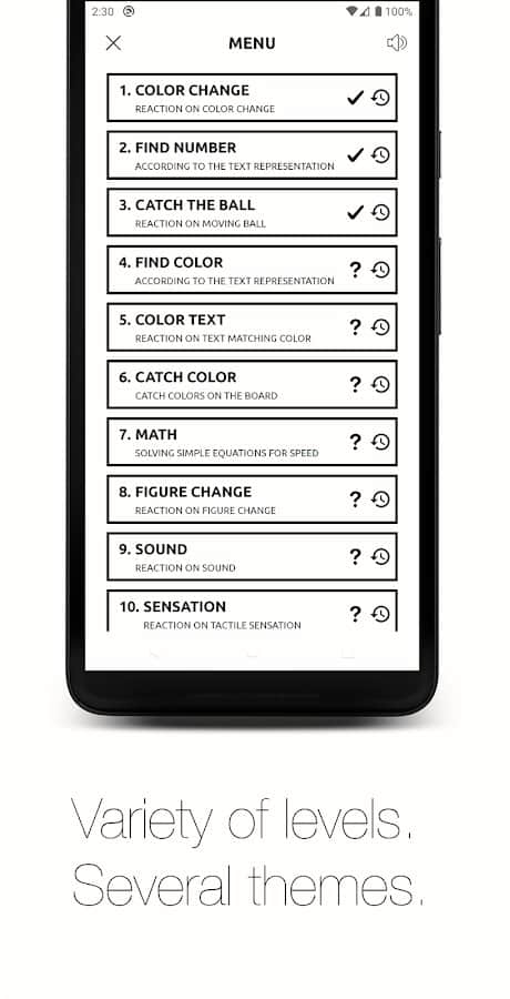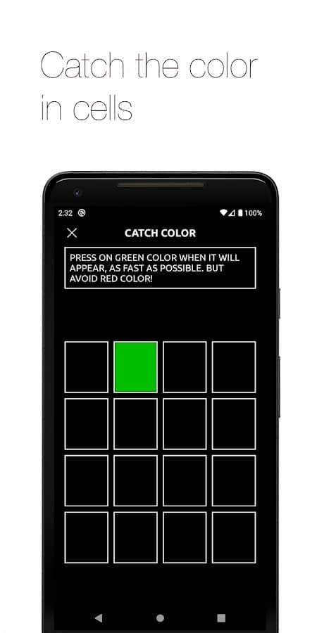 Тренировка реакции - Тренировка скорости реакции очень нужна в нашей непредсказуемой жизни и помогает решить важные ее вопросы в экстренных ситуациях. Вместе с приложением "Тренировка реакции" вы сможете выполнять различные упражнения и тесты, которые позволят вашим рефлексам реагировать молниеносно. Из наиболее эффективных можно выделить таблицы с постепенным уровнем усложнения задачи, математические задания, тестирования внимания на звук, движение, изменение цвета, вибрацию, совпадение, текстовое представление цифр, цветов, реакция на прицеливание, тренировка зрительной памяти и т.д.
