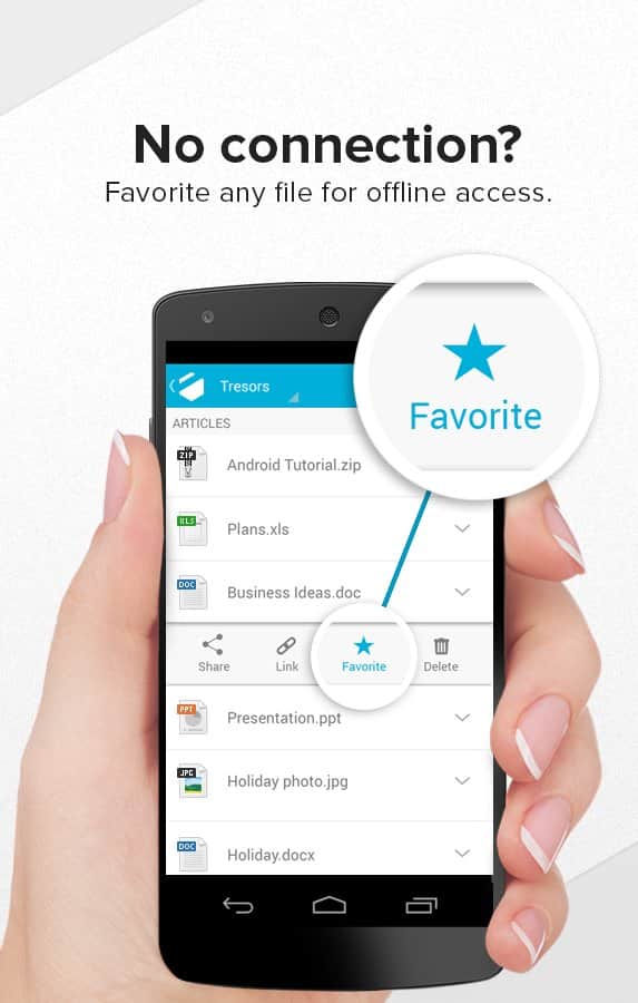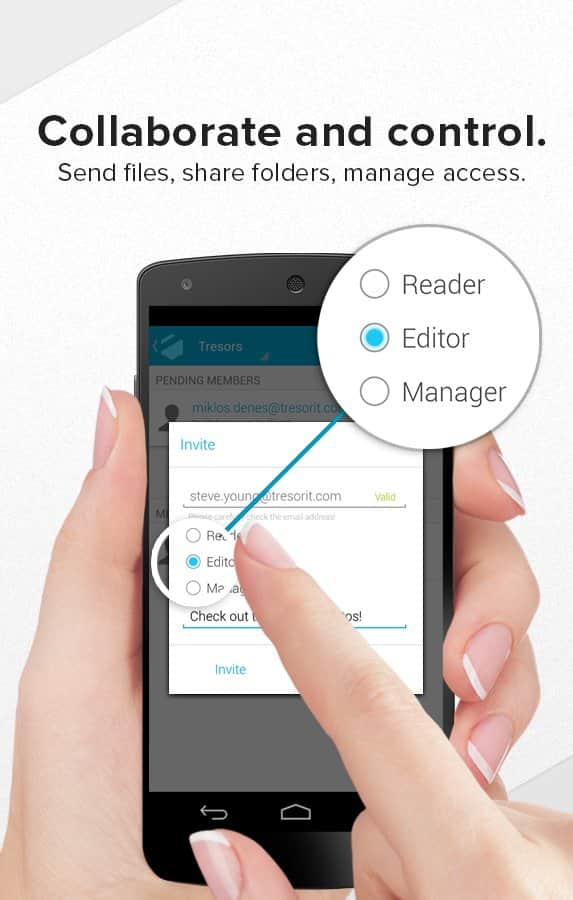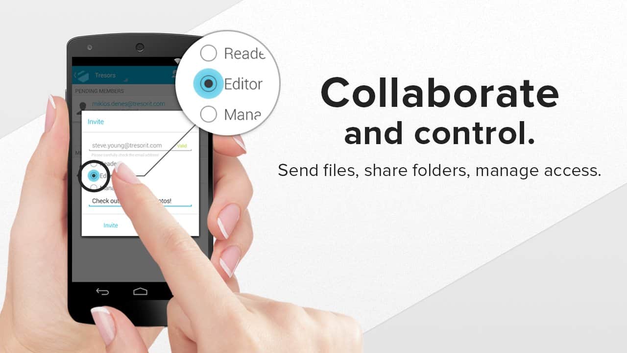 Tresorit – отличный, надежный и бесплатный сервис облачного хранилища данных для андроид, базирующийся в Венгрии. Сохраняйте, отправляйте и синхронизируйте свои конфиденциальные данные в Tresorit и будьте уверены, что к данной информации доступ имеете только вы, так как даже серверы Tresorit не имеют доступа к вашим данным. Регистрируйтесь и получите 5Gb файлового хранилища. Стоит отметить, что за приглашенных друзей разработчиками предусмотрено поощрение в виде получения бонусных Gb (до 32,5Gb). Так же стоит учесть, что на сегодняшний день, не возможно вручную изменить введённый при регистрации пароль к облачному хранилищу, поэтому будьте предельно внимательны.
