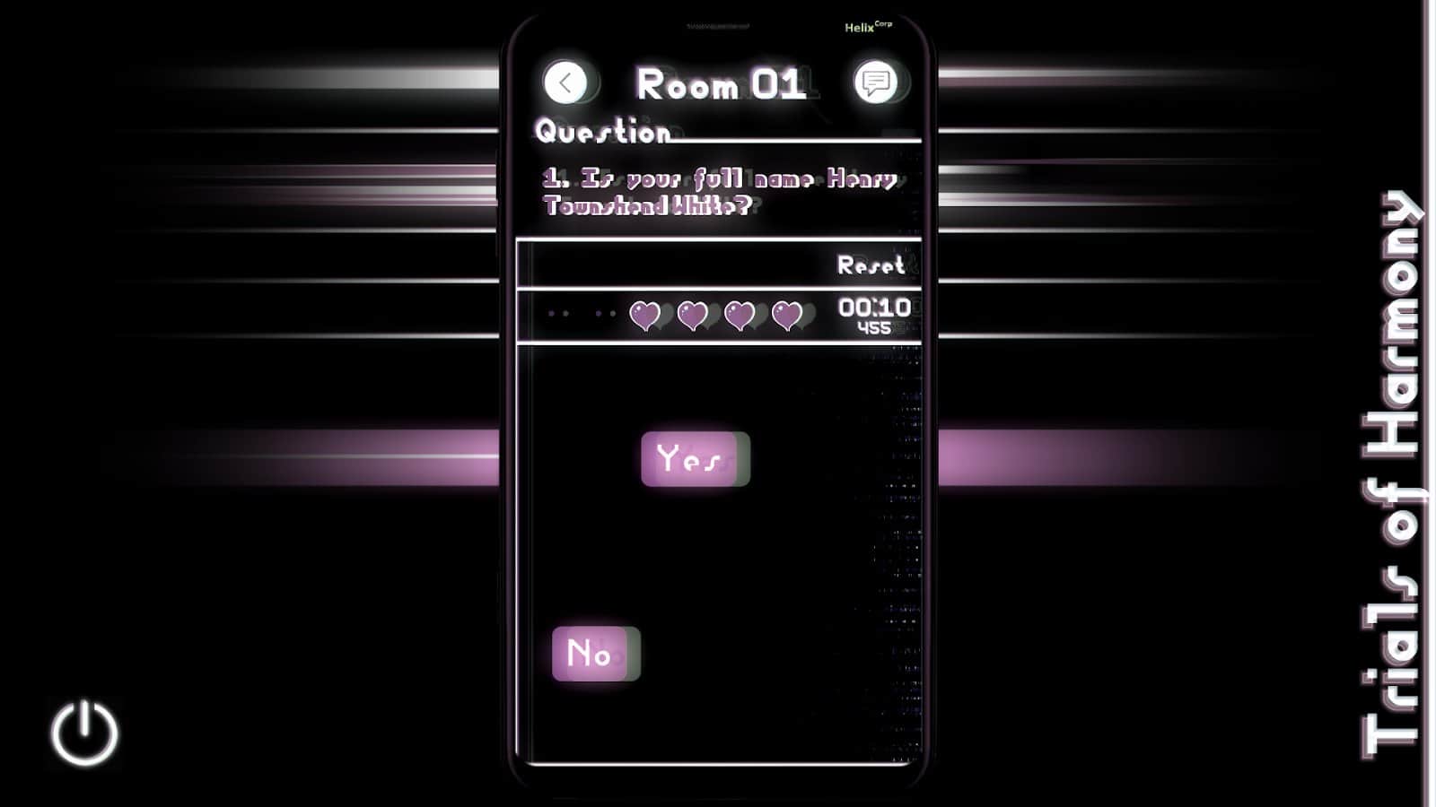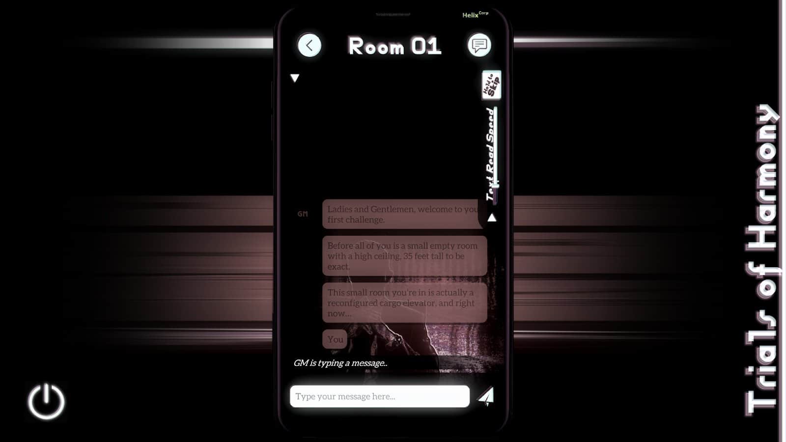 Trials of Harmony ~ Experimental Visual Novel – интерактивный роман на андроид, созданный на основе мобильного приложения для обмена сообщениями. В этой игре вы узнаете зловещую историю многочисленных заключенных который находятся за тысячи метров под землей и должны проводить там свой остаток жизни. В этой игре вы будете выступать в роли человека, который должен вести группу выживших людей и пытаться спасти им жизнь. По ходу игры старайтесь разгадать тайну похищения этих людей и узнать для каких целей их поместили в тюрьму. Пройдите через весь этот кошмар и доберитесь до правды.