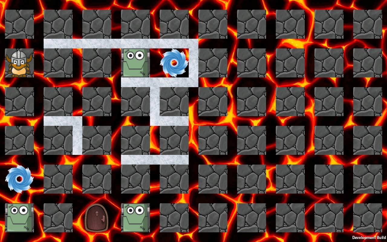 Trick The Monster - позиционная головоломка игровая механика которой выполнена по уже знакомой нам схеме. И так, на игровом поле расположен главный герой, которому необходимо добраться до выхода с уровня, различные неподвижные препятствия и конечно же враги. Дело в том что при перемещении персонажа синхронно двигаются и все монстры на локации, ваша задача так совершать ходы чтобы соперники не успели до вас добраться, а для это необходимо использовать любое укрытие или препятствие. На начальных уровнях игровой процесс выглядит достаточно просто, но по мере прохождения уровень сложности заметно возрастет и скорей всего пройти уровень с первого раза не получиться, так что напрягите мозги.
