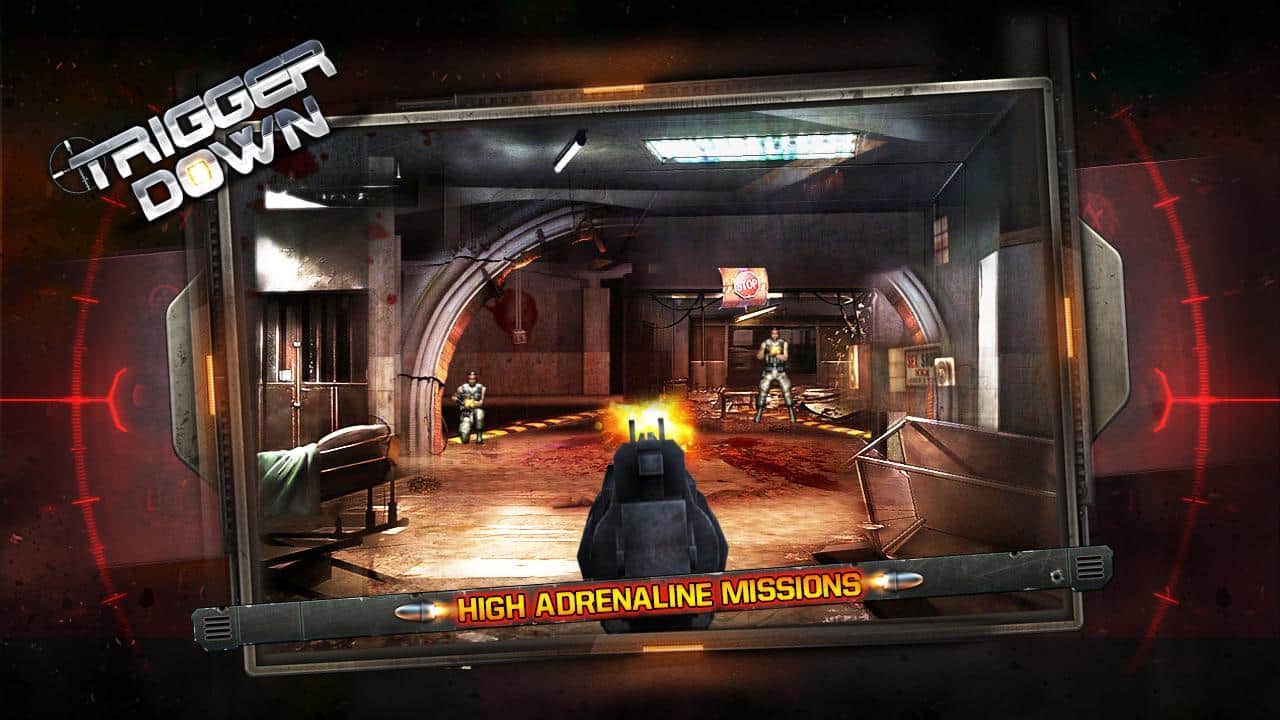 Trigger Down - военный экшен для андроид. Перед вами шутер от первого лица. Главный герой - элитный стрелок, который в составе группы борется с террористами. С этой благородной миссией, ваш герой будет путешествовать по разным городам и уничтожать противников. Кроме самой стрелялки вас ждет еще оригинальный саундтрек и достаточно хорошая фоновая музыка. Присутствует также апгрейд оружия, усиление брони, бонусы прямо на локации, которые могут исчезнуть, так что не медлите! Что ж, цели ясны, осталось только нажать спусковой крючок!