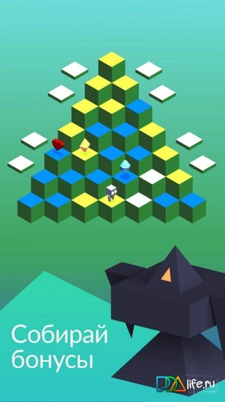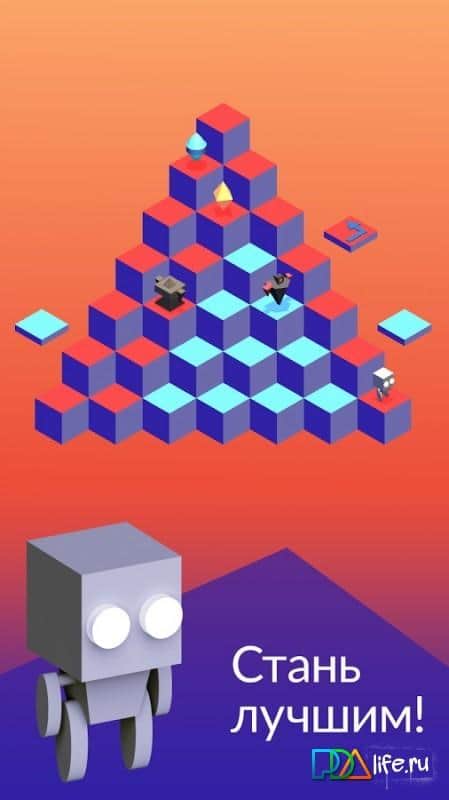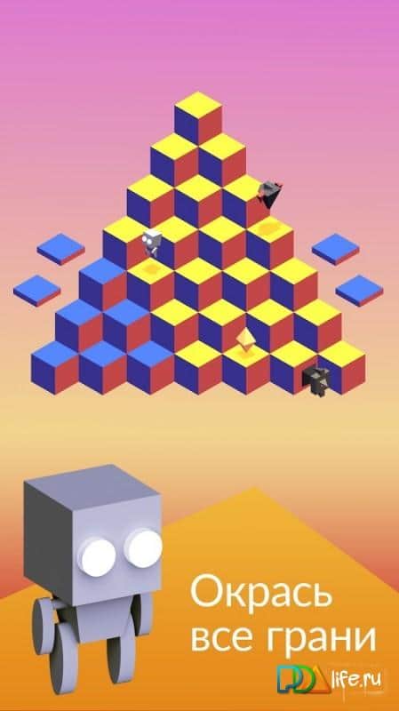 Tringle – весьма любопытная игра в кубическом мире. Играть мы будем за робота, которому просто необходимо перекрасить кубы в необходимый цвет. Но как вы понимаете, просто так вам этого сделать ни кто не даст. Иначе и игра была бы скучной и неинтересной. Вам будут мешать различные существа, которые ходят за вами по пятам и просто жаждут побыстрее до вас добраться. Для более продуктивной работы вы можете прокачать своего робота. Открывайте новые уровни, бейте рекорды друзей и устанавливайте новые. Да так, чтобы ни кто не смог их побить.