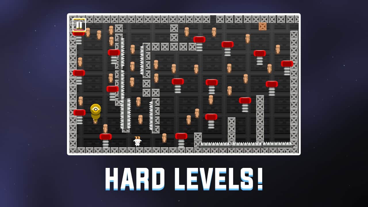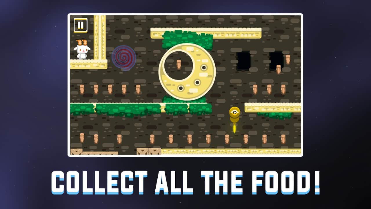Trippy Goat – головоломка на андроид, где вы будете помогать пушистой козе вернуться в свою галактику. Инопланетяне похитили нашу героиню и перенесли ее на опасную планету полную врагов и препятствий. Перемещайтесь по многочисленным уровням игры, обходите все преграды на пути и старайтесь собрать всю еду. Каждый уровень игры станет для вас вызовом и проверит на деле вашу ловкость пальцев и сообразительность. Касайтесь правой или левой стороны экрана чтобы начать движение, собирайте все продукты питания и прыгайте на врагов чтобы уничтожить их. Пройдите все уровни игры и вернитесь домой.