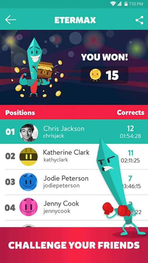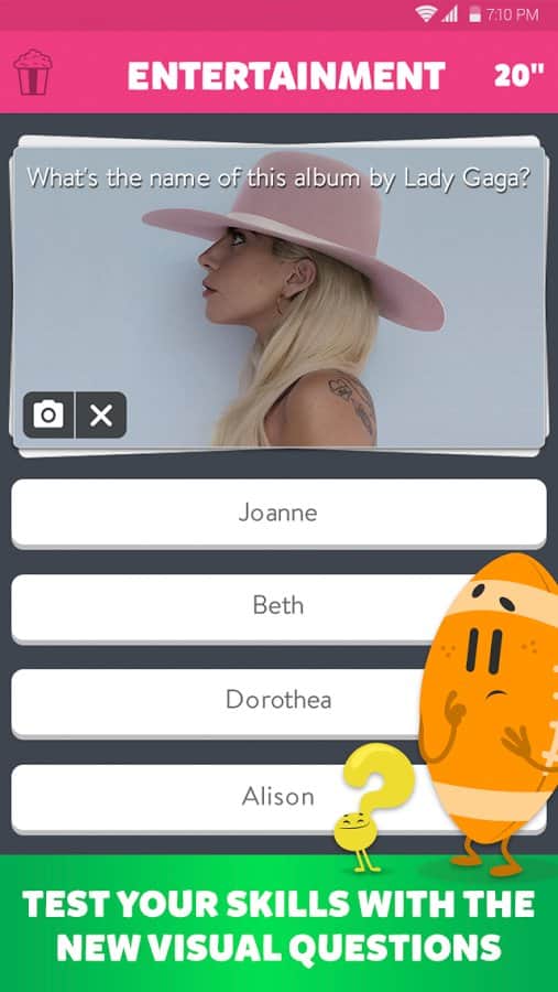 Trivia Crack – популярная викторина на андроид, с более сотней тысяч интересных вопросов. В эту игру теперь вы сможете играть со своими друзьями и другими игроками со всего мира. Бросайте вызов соперники и крутите рулетку, отвечая на различные вопросы. Положитесь на свою сообразительность и эрудицию, чтобы ответить на все вопросы из шести разных категорий. Вашей главной задачей будет собрать шесть корон, чтобы добиться невероятных результатов. Создавайте свои собственные вопросы на фабрике и общайтесь с соперников в чате. Докажите всем что вы лучший игрок и весело проводите свое свободное время.
