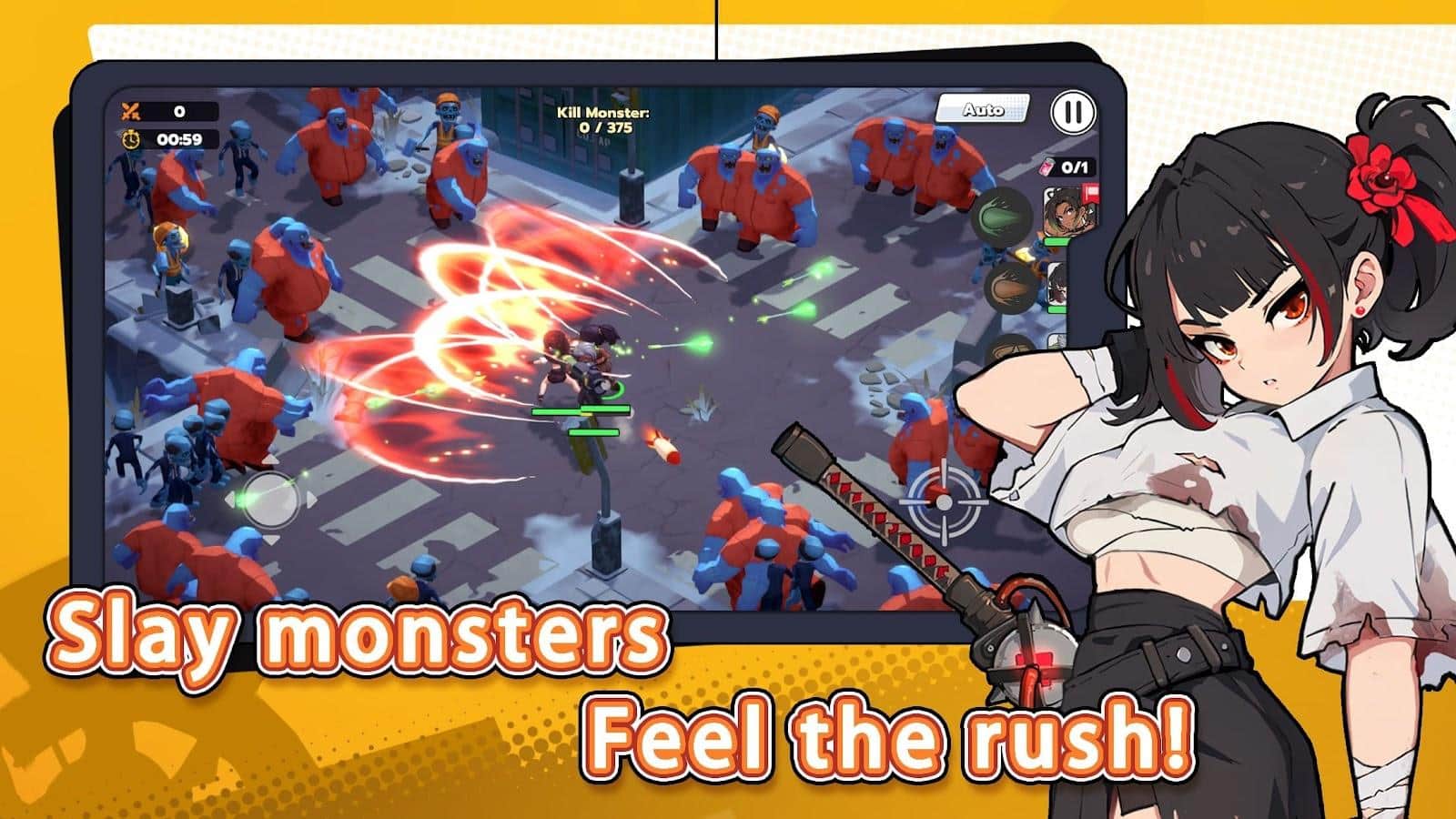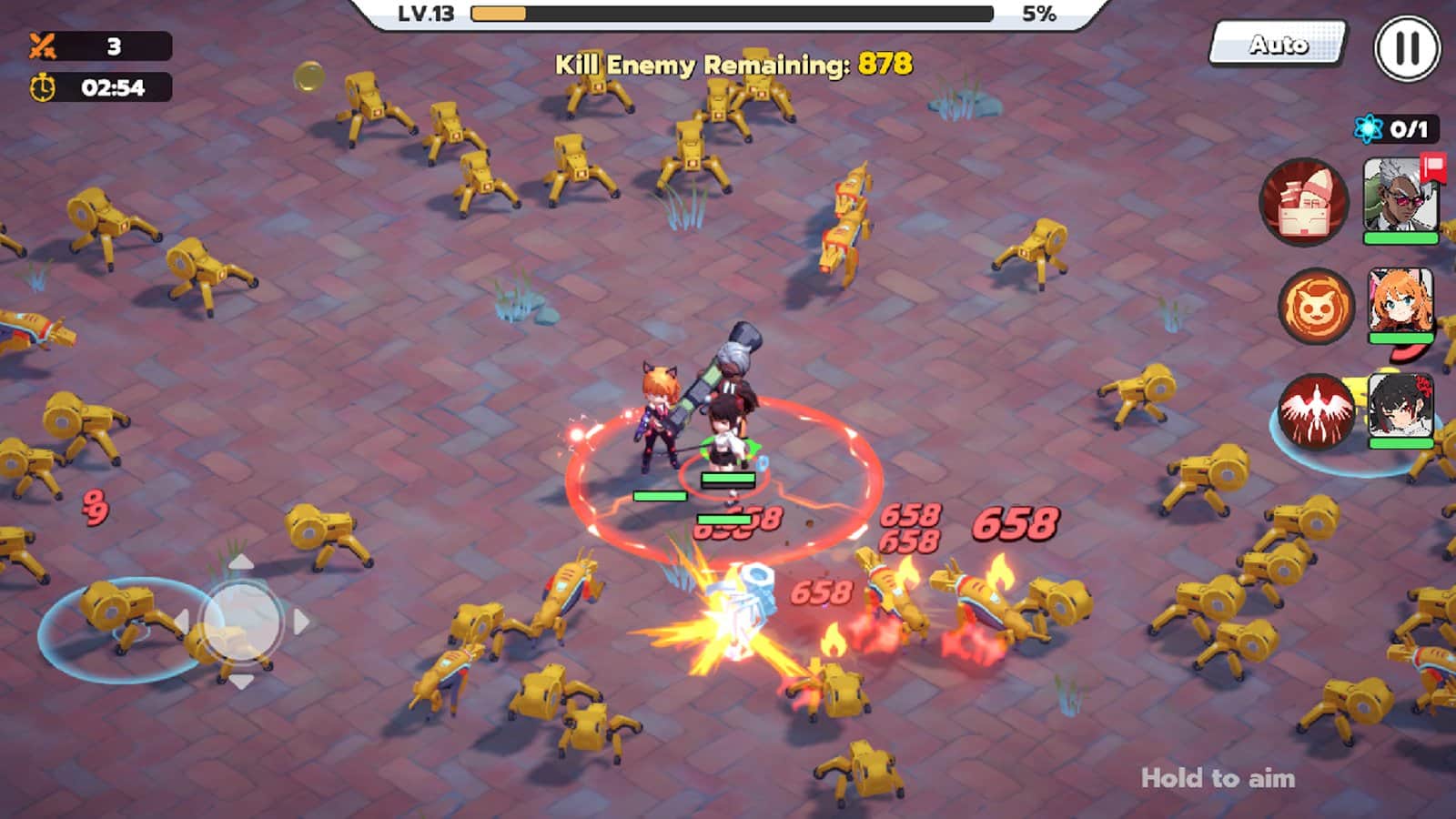 Механика Survivors-игр, полуавтомат.отряды с навыками (по типу Azur Lane и Blue Archive), мини игры - раннеры, сбор и прокачка предметов, как в рогаликах.