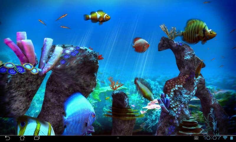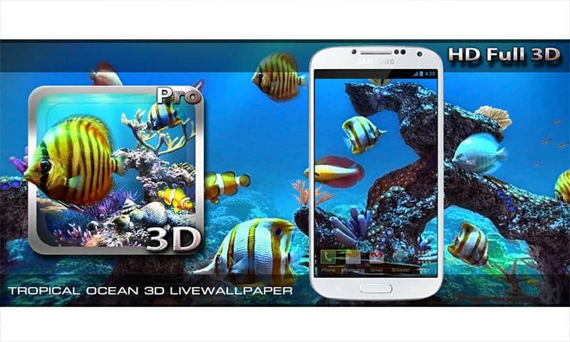 Tropical Ocean 3D LWP - Красивые живые обои, для любителей подводной фауны и флоры. Впечатляющая 3D графика, и качество картинки просто не могут не радовать глаз. Данное приложение было оптимизировано по максимуму, что бы потреблять заряд батареи как можно меньше. Просто установите их, выберите понравившийся вам фон, а так же настройте анимацию по собственному желанию. Меню в данном приложении очень простое и понятное, даже без русского перевода. Эти обои вполне смогут поднять вам настроение, в пасмурный будний день.