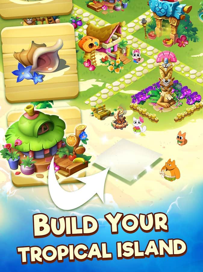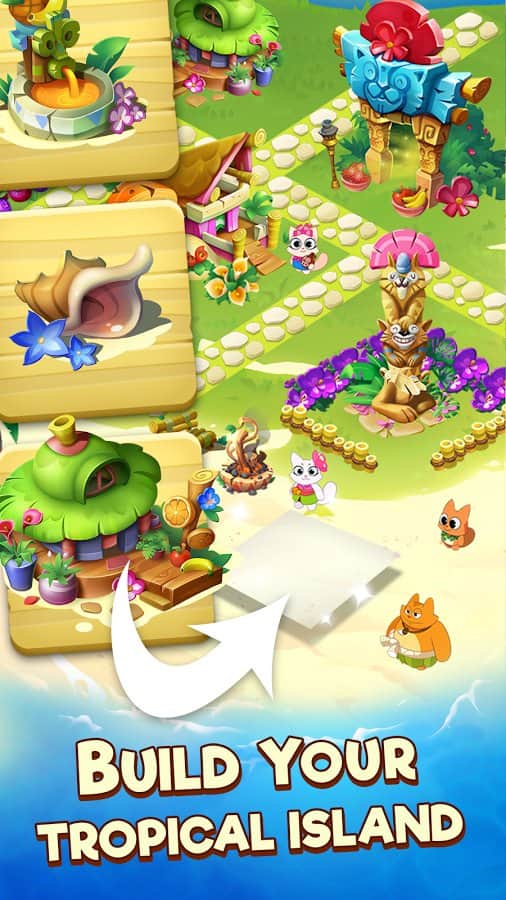 Tropicats - Puzzle Paradise – откройте для себя неповторимый тропический остров где живут милые котята. В этой игре из жанра три в ряд вашей задачей будет восстановить остров после ужасной катастрофы и разгадать ее тайну. Составляйте по три и более одинаковых фрукта в ряд и взрывайте их. Проходите как можно быстрее уровни игры и открывайте для себя многочисленные бонусы и усиления. Обустройте свой остров по своему усмотрению и получайте ценные подарки. Познакомьтесь с милыми кошками и сделайте их жизнь более веселой и радостной. Проходите все квесты игры и сделайте свое путешествие более интересным.