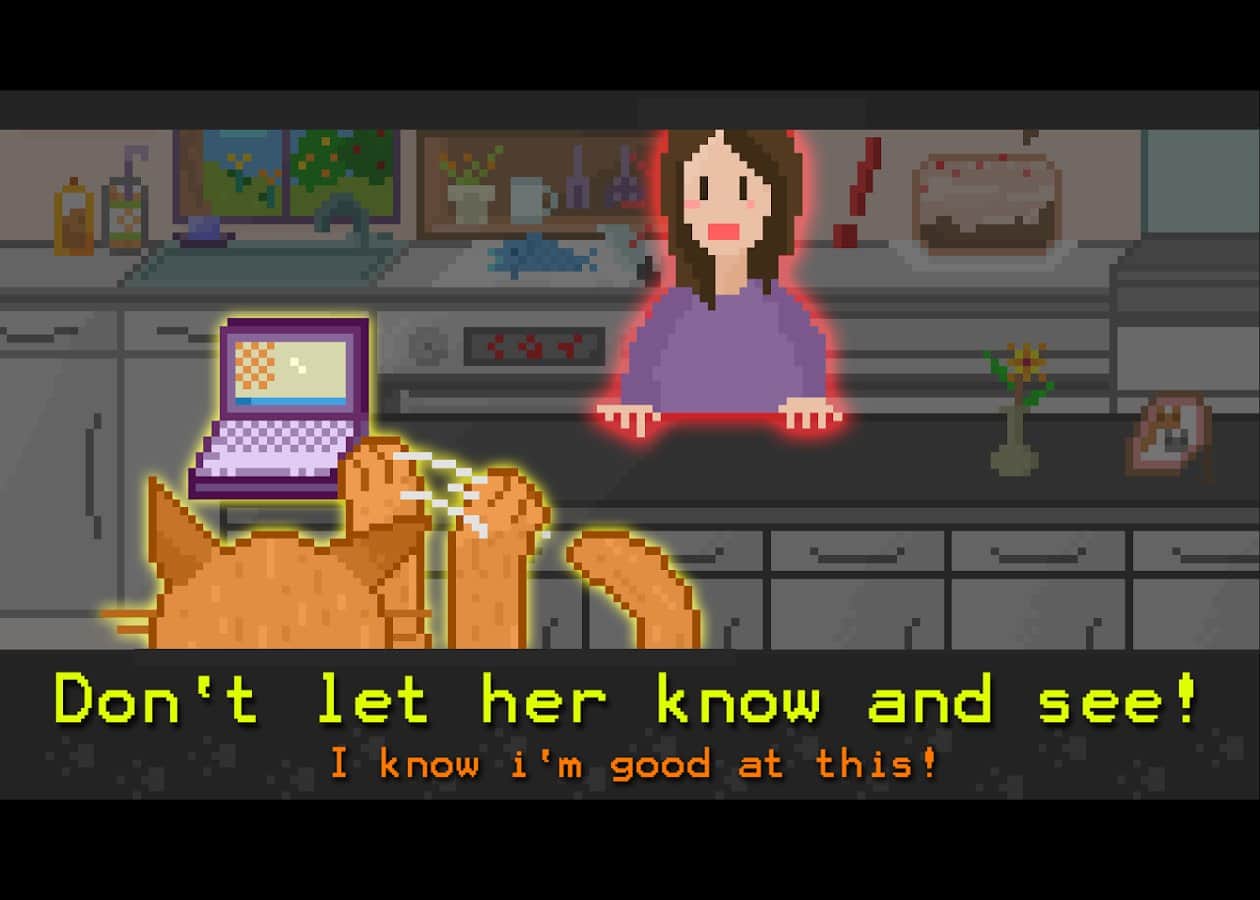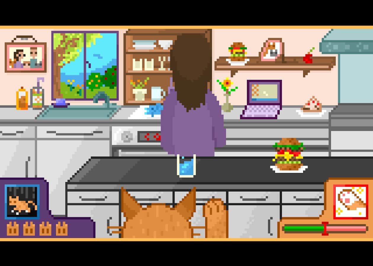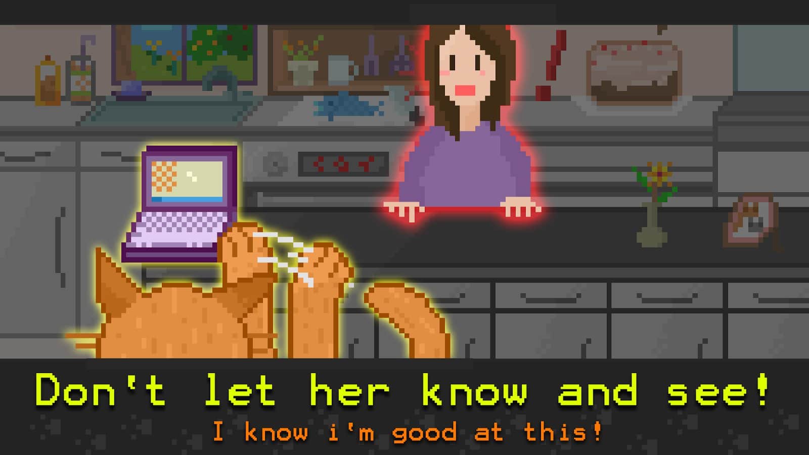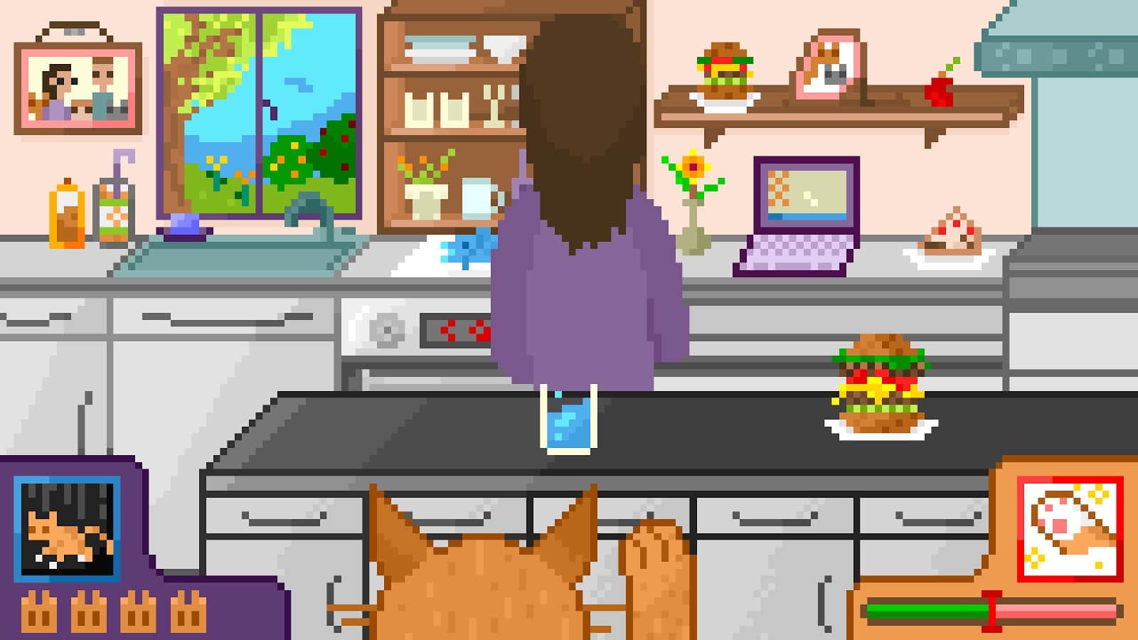 Trouble Cat - забавная пиксельная аркада в которой вам предстоит играть в роли шаловливого рыжего кота. Наш герой живет в доме вместе с хозяйкой и не смотря на то что получает весь необходимый уход, в силу скверного характера, так и норовит насолить хозяйке. То скинет все со стола, то уронит вазу или оборвет шторы, а потом молниеносно скрывшись с места преступления отсиживается в укромных местечках. Ваша задача используя все навыки пушистого хулигана помочь ему в совершении этих мелких правонарушений, однако стоит помнить, что несмотря на всю любовь хозяйки и ее терпение может подойти к концу и если вы будете попадаться слишком часто то вполне можете отправиться жить за порог. Trouble Cat - одна из тех игр что вполне способны затянуть на несколько часов к ряду, а забавный персонаж полюбится вам с первого взгляда.