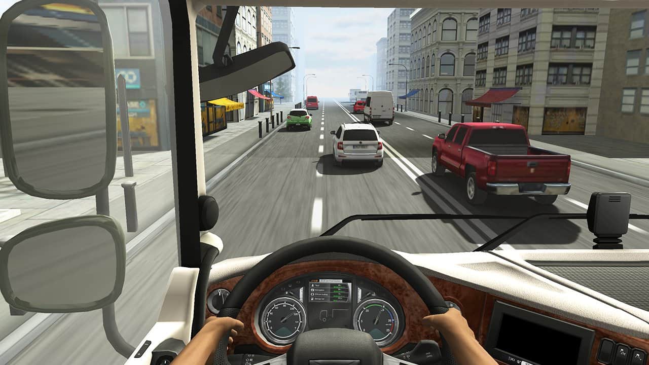 Truck Racer – возьмите под свой контроль огромный грузовик и проведите его по всем локациям игры. В этой игре вы будете ездить по оживленным улицам города и загородным шоссе, избегая аварийных ситуаций лавируя в бесконечном потоке транспорта. Почувствуйте себя профессиональным водителем в этой игре и выполняйте все миссии и задачи предложенные вам. Наблюдайте за всем происходящим из кабины водителя и полностью погрузитесь в игру, используя акселерометр для поворотов и перестройки в другой ряд. Получайте отличные награды и бонусы и пройдите как можно большую дистанцию в этой игре. Открывайте новые карты и грузовики.