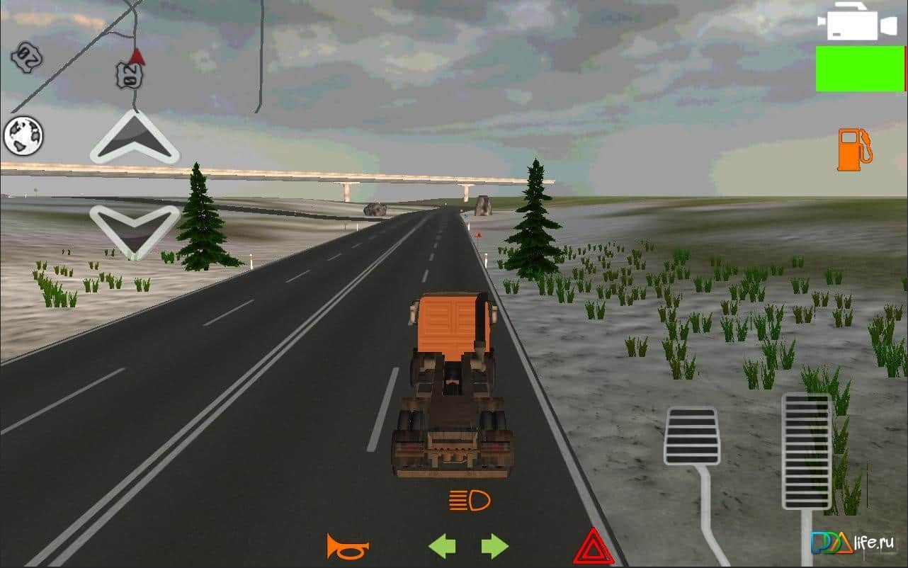 Эта игра "пустая ", в ней СОВСЕМ ничего интересного не происходит ,сел поехал, как и вTruck Simulator 3D . В Truck Simulator 3D трафик есть , но от этого не легче , от города до города ехать 15-25 мин по СКУЧНЕЙШИМ \ ОДНООБРАЗНЫМ дорогам . Дальнобойщики 2 для андорйда была бы супер , а управление можно было бы подстроить под нужды сенсора .