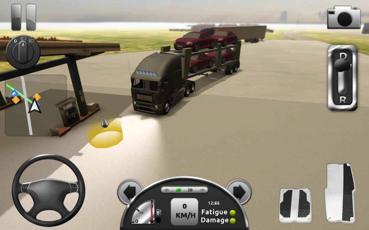Truck Simulator 3D – симулятор дальнобойщика на Андроид с неплохой трехмерной графикой. Ваш ждут интересные поездки среди одиннадцати городов США на восьми различных моделях грузовиков. В игре хорошо прорисованы дороги, а управление грузовиком максимально приближено у оригинальному. Так же игра может похвастаться реализацией повреждений, расход топлива, и усталость водителя.