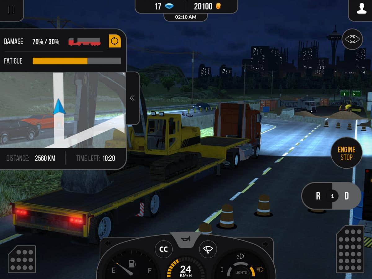Truck Simulator PRO 2 – реалистичный симулятор дальнобойщика для IOS. В этой игре вы сядете за руль огромного грузовика и будете перевозить грузы по всем штатам Америки. Управляйте грузовиком и не допускайте аварийных ситуаций на дороге, привозя грузы точно в указанные сроки. Получайте деньги за доставленный товар и заправляйте свой бак топливом, отдыхайте в отелях и ремонтируйте машину. Станьте перевозчиком номер один в этой игре и открывайте новые грузовики, а также создайте свою собственную транспортную компанию. Ездите по городам, селам и трассам и наслаждайтесь реалистичной физикой, отличной графикой и сменой пейзажей.
