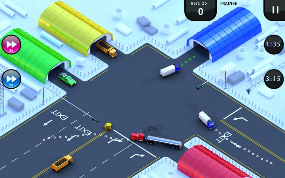 Truck Traffic Control - Простая и очень забавная игра-головоломка. Почему же именно головоломка спросите вы, все очень просто, вам нужно будет думать очень быстро и много! Если же вы не успеете изменить направление движения автомобиля, они сразу же столкнуться, и вы проиграете. С каждым новым уровнем карта будет становиться все сложнее, у авто появятся грузы, и проходить её станет ещё труднее. Управление очень простое, вам всего то и нужно что выбрать быстро направление движения и так с каждым автомобилем, и как можно быстрее.
