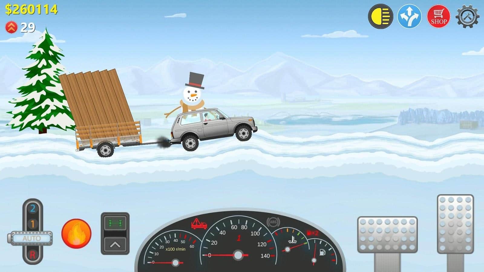 Trucker Real Wheels – Simulator – реалистичный симулятор на андроид, где вы будете выступать в роли дальнобойщика. Почувствуйте себя в роли дальнобойщика и перевозите грузы зарабатывая на этом деньги и восстанавливая город. В этой игре вы будете управлять огромным грузовиком и перевозить грузы ездя по бездорожью и делая все возможное чтобы выполнить миссию. Ездите по заснеженным и горным дорогам и перевозите грузы в сложных погодных условиях. Прокачивайте и улучшайте свой грузовик после каждого заезда и открывайте для себя новые. Чтобы разнообразить геймплей в игре вы найдете гонки на время, возьмите свой грузовик и участвуйте в заездах стараясь попасть в лидеры и подняться на самый верх таблицы. Осуществляйте ремонт грузовика и не забывайте заправлять его вовремя.