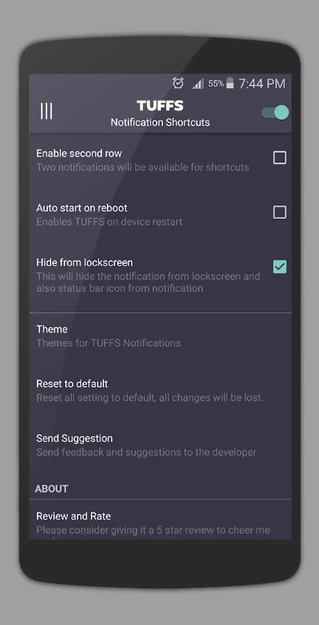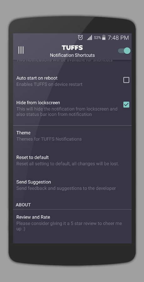 Как таковой внешний вид приложения оценить сложно, ведь все, что мы видим незаметно и органично вписывается в шторку уведомлений, а вот раздел с настройками выполнен в характерном Material Design.