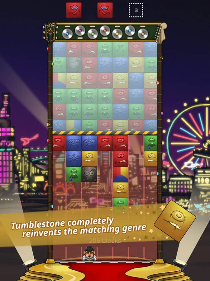 Tumblestone – увлекательная головоломка на андроид, где вы будете уничтожать блоки разного цвета. В этой игре вы возьмете под свой контроль забавного героя, который перемещается внизу экрана и находит блоки одного цвета, уничтожая их. Составляйте ряды из трех и более блоков и помогите персонажу установить свой рекорд в этой игре. Очистите экран своего телефона или планшет от разноцветных блоков и не дайте им опуститься до нижней границы. Путешествуйте по разнообразным мирам и проверьте в действии все режимы игры. Откройте всех забавных персонажей и поднимитесь на самый верх таблицы лидеров.