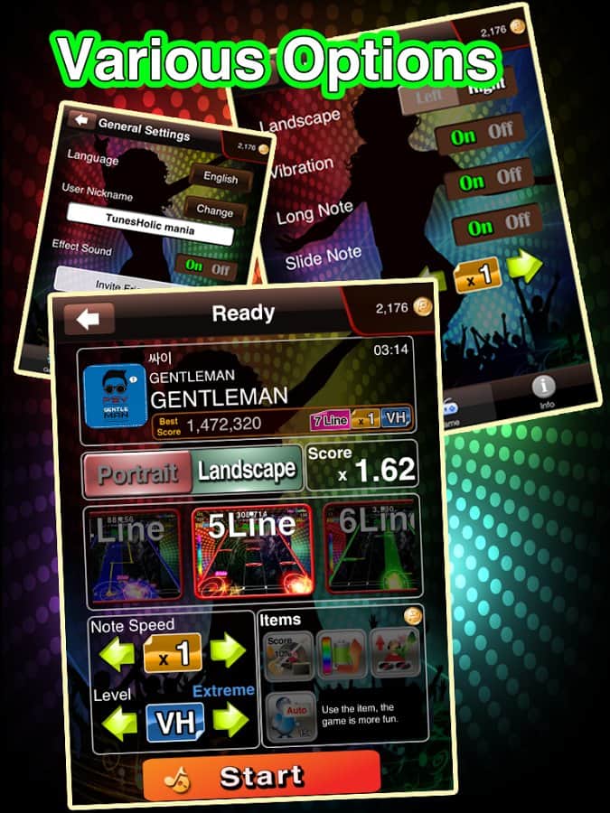 TunesHolic - Музыкальная аркада на андроид от восточного производителя. На экране 4 полосы, по которым двигаются звуки. Кликайте по ним вовремя, и у вас получится мелодия. Чем точнее вы кликаете, тем больше очков вы получите. Если эта очередность постоянна, то и очки будут расти быстрее. В полной версии игры можно играть с собственными мелодиями, которые находятся у вас в аппарате.