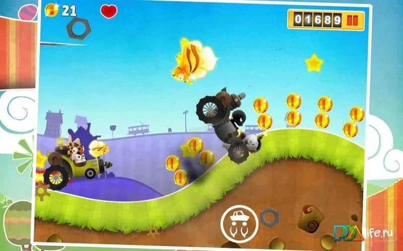 Turbolab Pursuit - Забавные гонки на андроид, где вы перенесетесь в самое начало автомобиле строения. В это время жил один ученый, который решил сделать прототип автомобиля из подручных средств. Вам предстоит покататься в этом чуда автостроения профессора Веста. Кроме того, вы сможете помогать ученому улучшать машину: в наличии около 400 деталей и оружия к этому чудо автомобилю.